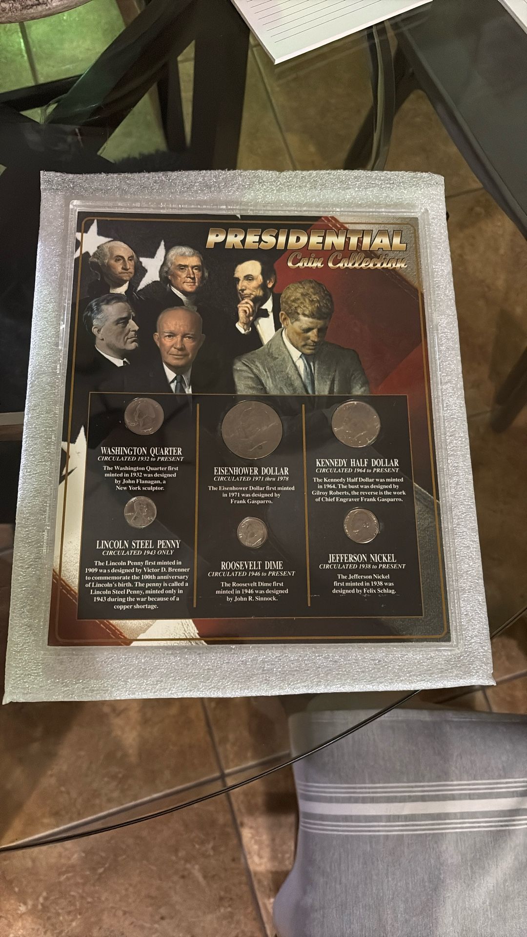 Coins in high grade. Includes the 1943 steel penny. 1(contact info removed) Eisenhower dollar. 1973 Jefferson nickel. 1973 Washington quarter. 1973 Kennedy half dollar. 1973 Roosevelt dime in Acrylic frame.