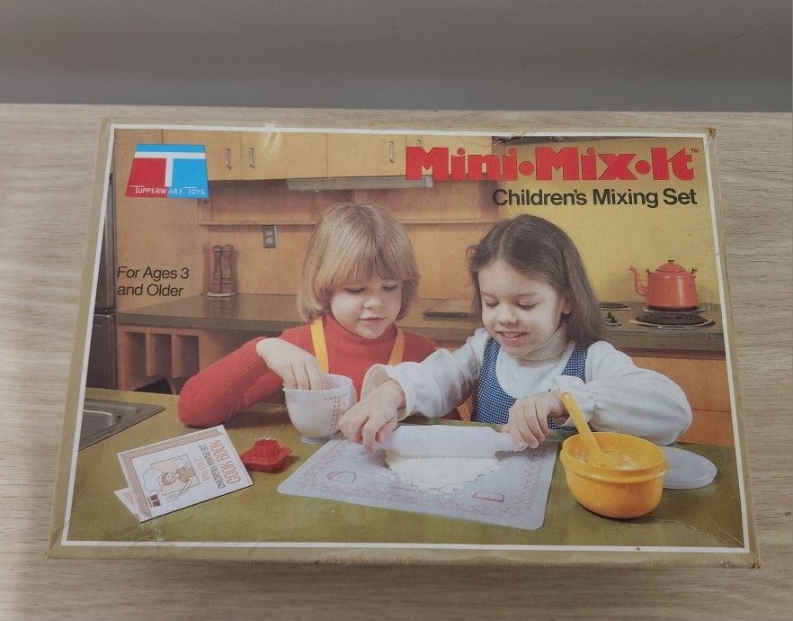 Step back in time with the Vintage 1979 TUPPERWARE Toys MINI-MIX-IT Children’s Mixing Set, a delightful addition to any collection or playtime. This set, made in the United States, embodies the classic charm of Tupperware products, designed to capture the imagination of children and the nostalgia of yesteryear. Suitable for a wide range of ages, from 3 to 17 years and up, this iconic mixing set is a testament to the durability and quality that Tupperware is known for. Whether used for play or display, it's a whimsical nod to the retro era of Tupperware toys, ready to bring a touch of vintage flair to your home.