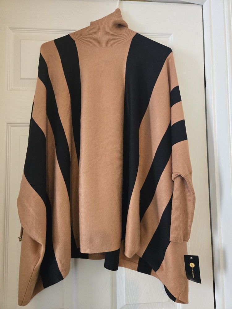 JM Collection Tan and Black Women's Poncho Sweater