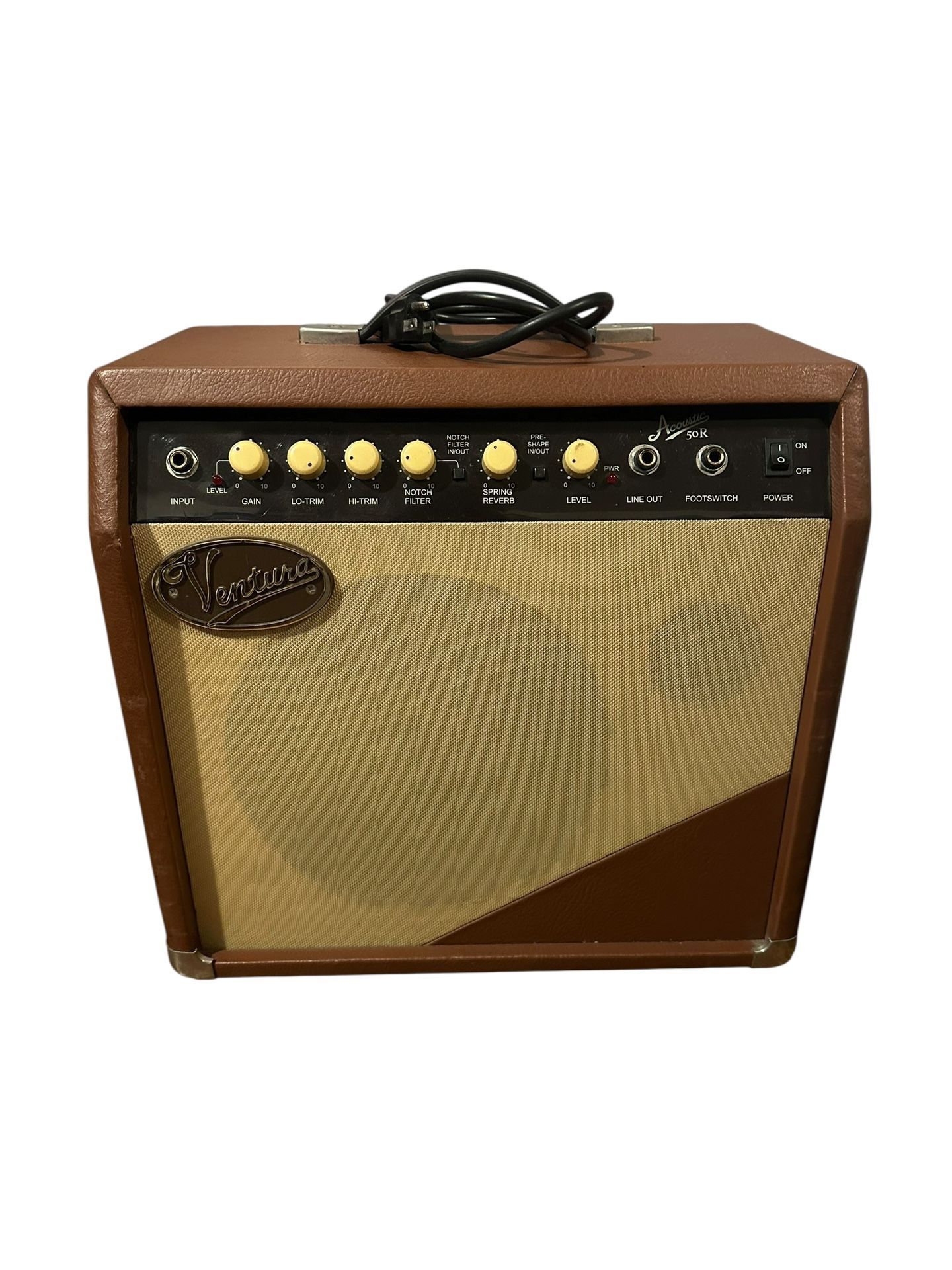Ventura 50R Acoustic amp sounds like a cross between an 80s Marshall and Fender Acoustasonic. Works perfect, wasn't used much at all, enough highs for most electric guitar players Back leather has a very slight peel (can be glued) $150 OBO