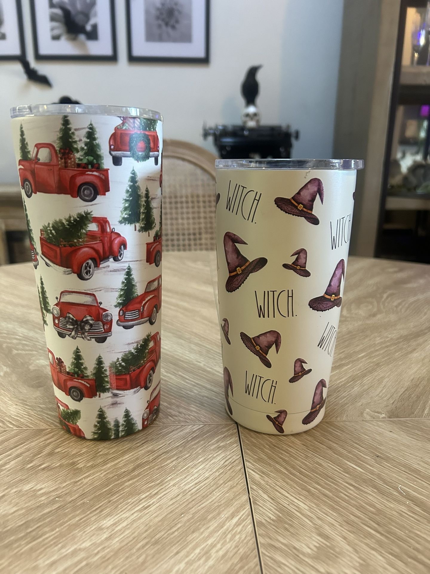 Set of Two Tumblers 25oz and 17oz. One for Christmas and Halloween. Both are super cute. $10 for set FIRM (Will Take Zelle).