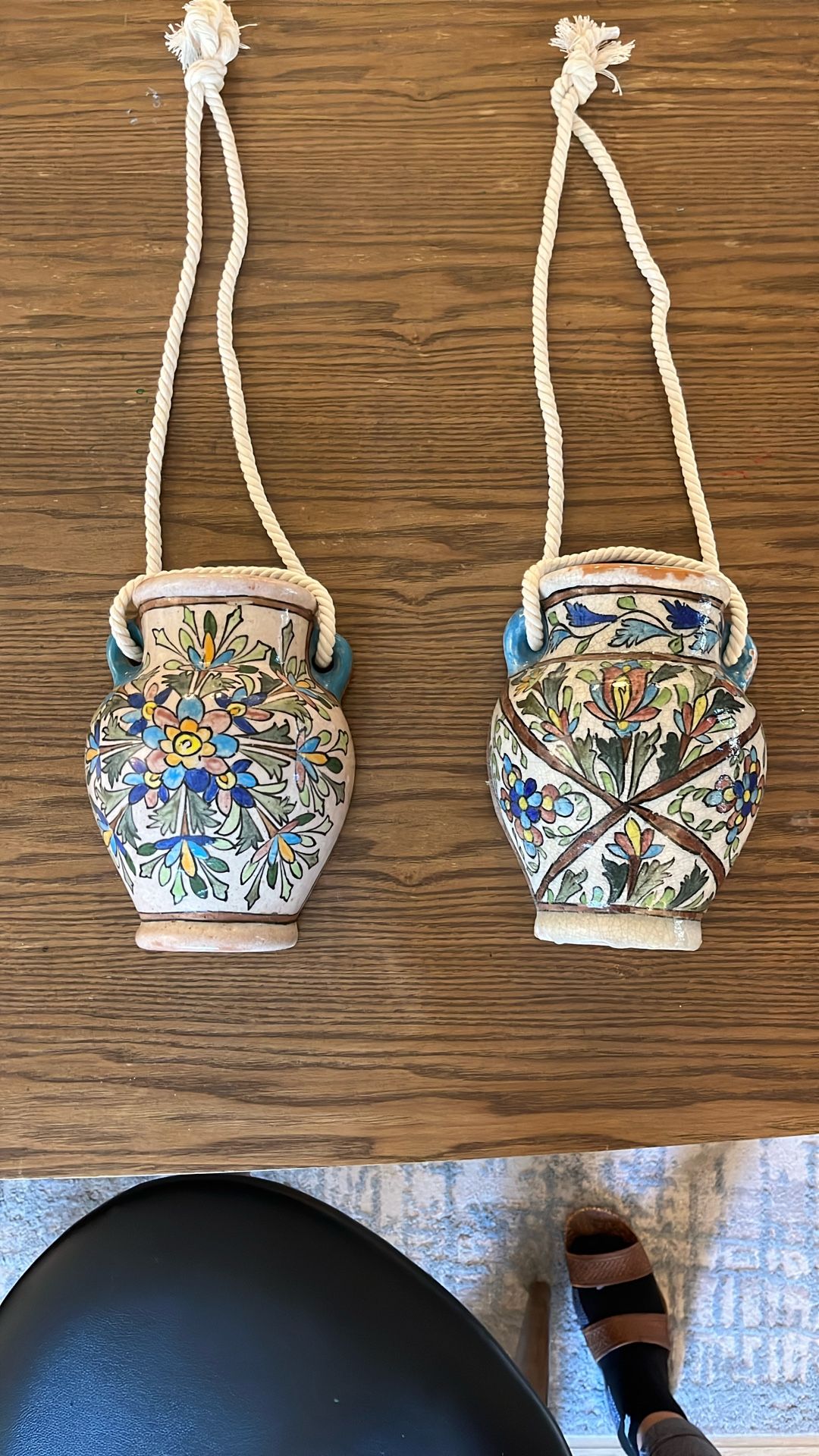 They feature vibrant, multi-colored hand-painted floral designs. The style strongly resembles Middle Eastern or Mediterranean pottery traditions, Size: 8x6 inch Each price for $40