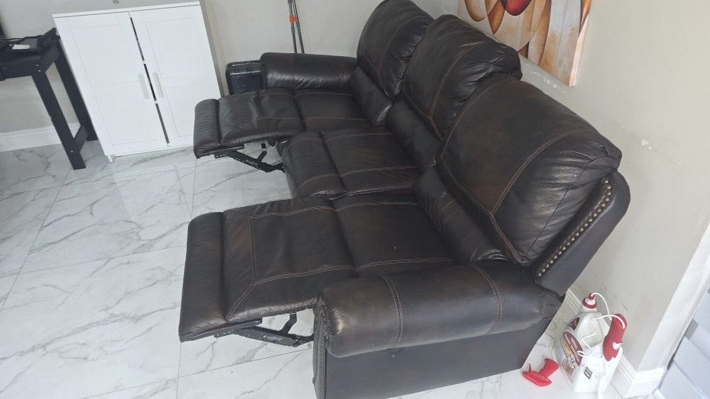 Upgrade your living space with this comfortable and stylish leather reclining sofa! Perfect for relaxing after a long day or entertaining guests.