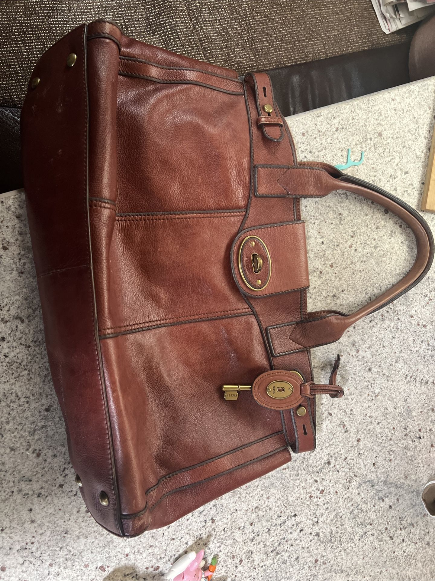 Fossil weekender unisex leather xl travel tote bag mahogany brown vintage used , in mint condition well kept in pristine condition, fossil leather tote bag, vintage 1954