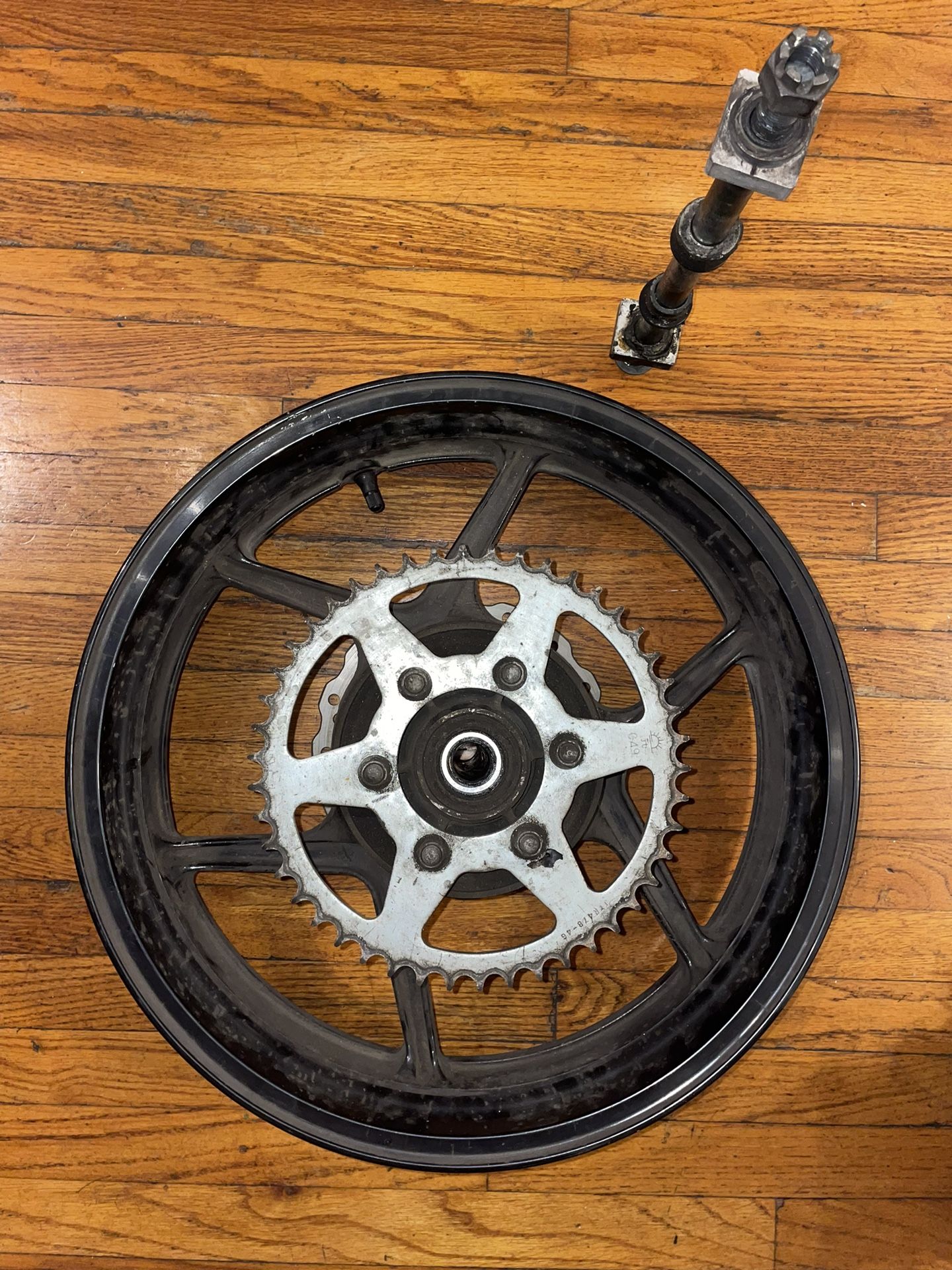 Nice set of wheel for 2012-2016 Ninja 650. They are straight no dents & the bearings feels smooth. Rotors in good shape too. Just needs to be cleaned up. I can mount tires if you want a set for an extra cost depends on what tires you want.