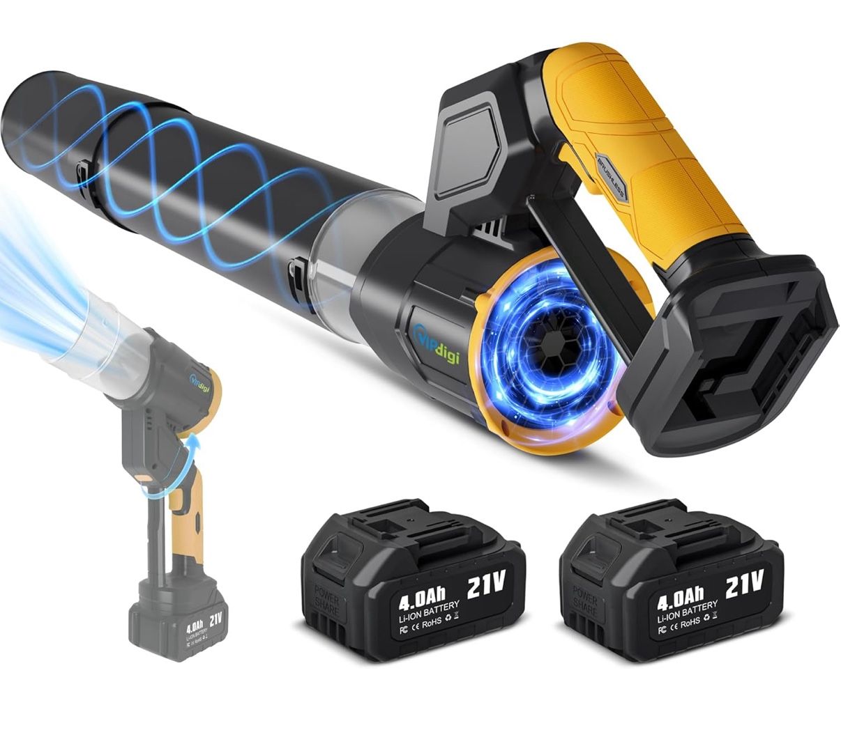 Electric Leaf Blower Cordless, 180° Rotatable, 2 Batteries & Charger, Handheld Leaf Blowers for Lawn Care, 4 Speed Mode, Portable Lightweight Grass Bl