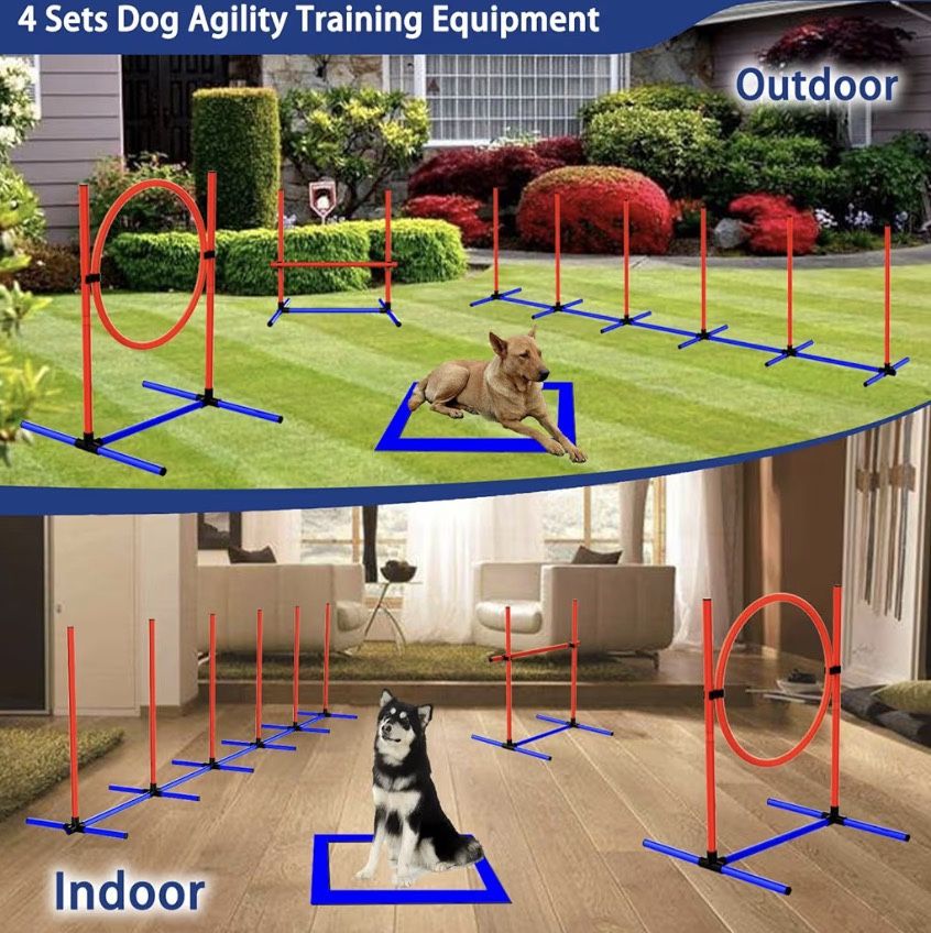 4 Sets Pets Agility Training Equipment, Adjustable Dog Hoop, Dog Jump, Weave Poles and Pause Box,with Independent Packaging(4 Sets)