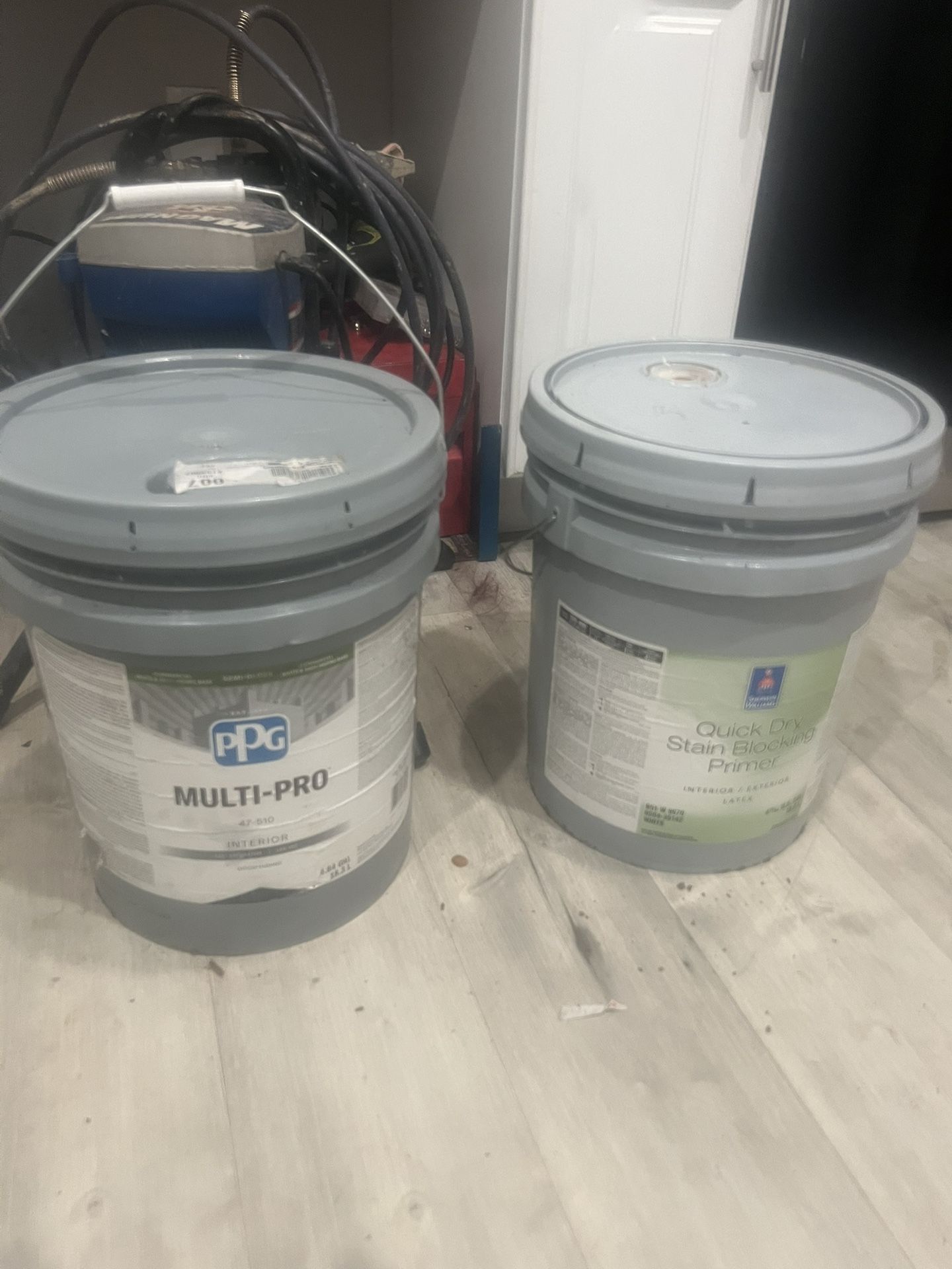 I’ll take 150 for both white interior paint and the other is primer 5 gallons