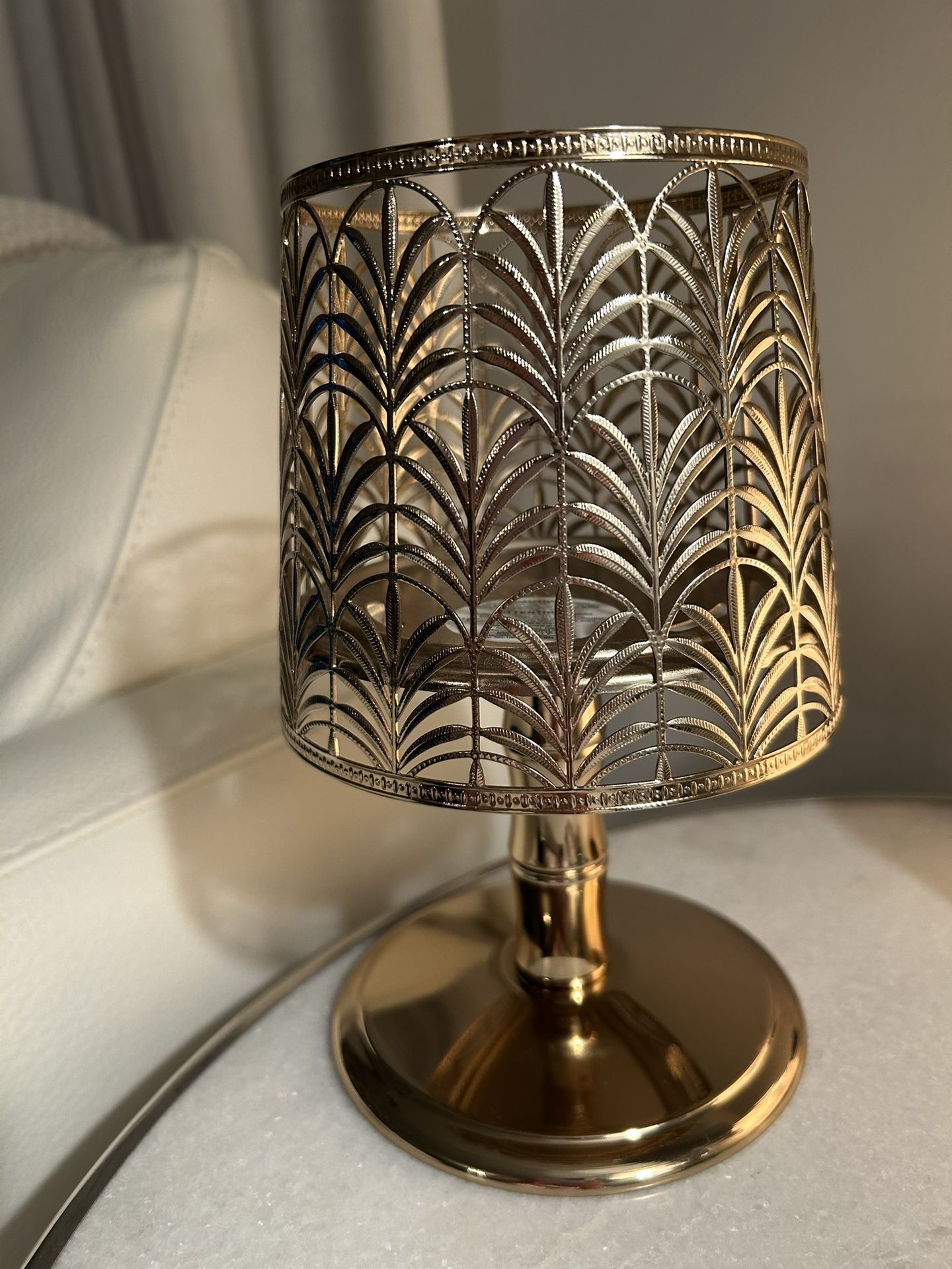 New Bath & Body Works 3 Wick Candle Holder Gold Leaf Lamp Design