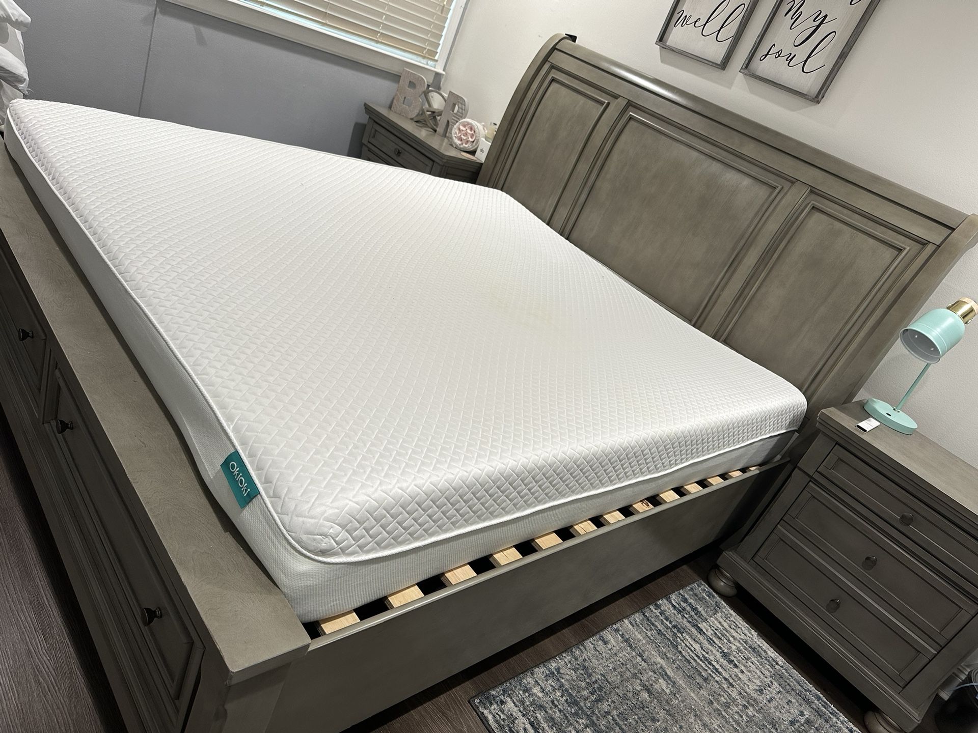 This bed is king size and great for couples! The only reason for sale is bc we are moving out of California! Comes with night stands that have storage as well as 2 draws on the bed frame! If you purchase you will need to bring your tools to take the bed apart!