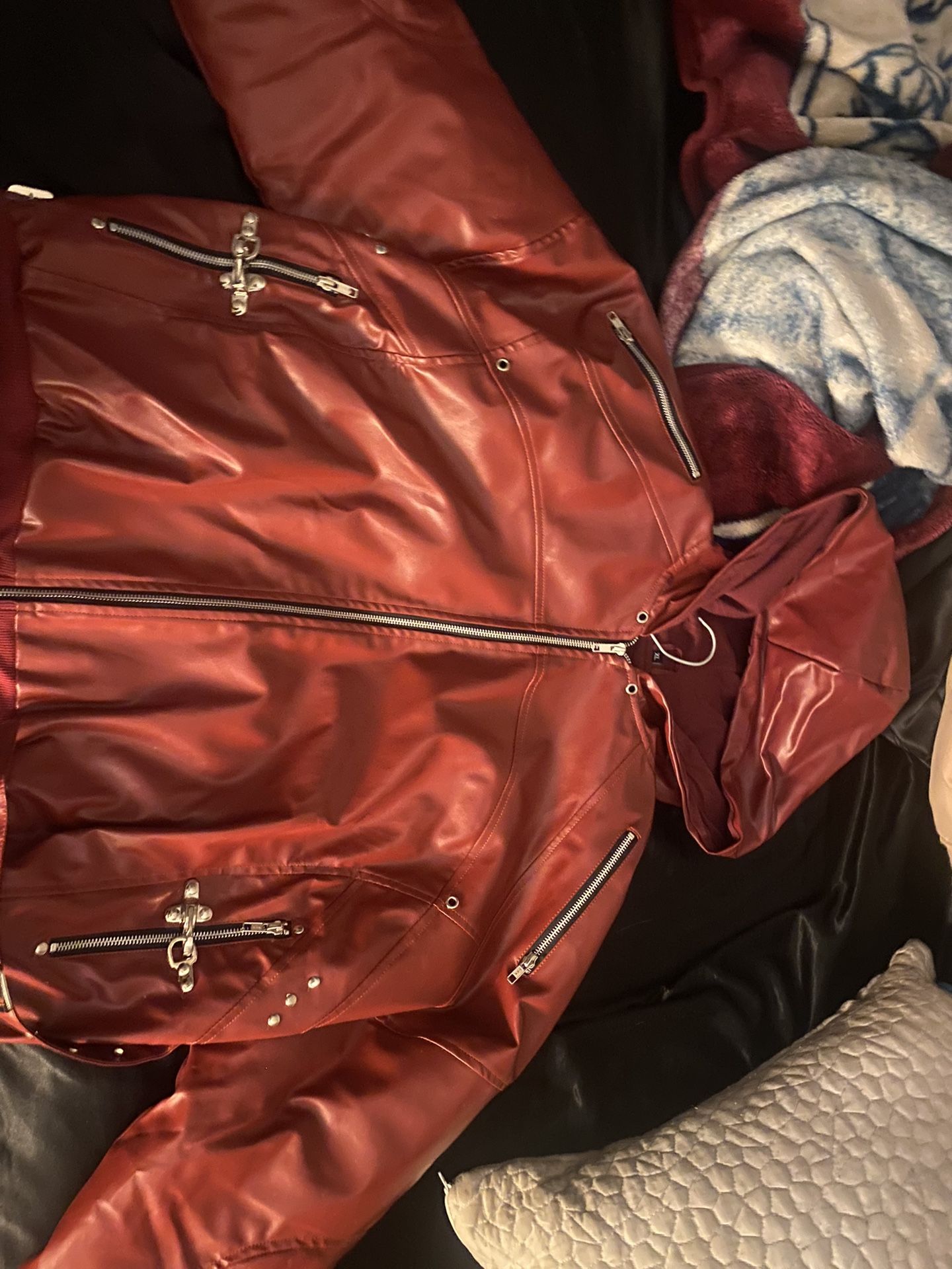 Red Leather Bomber Jacket