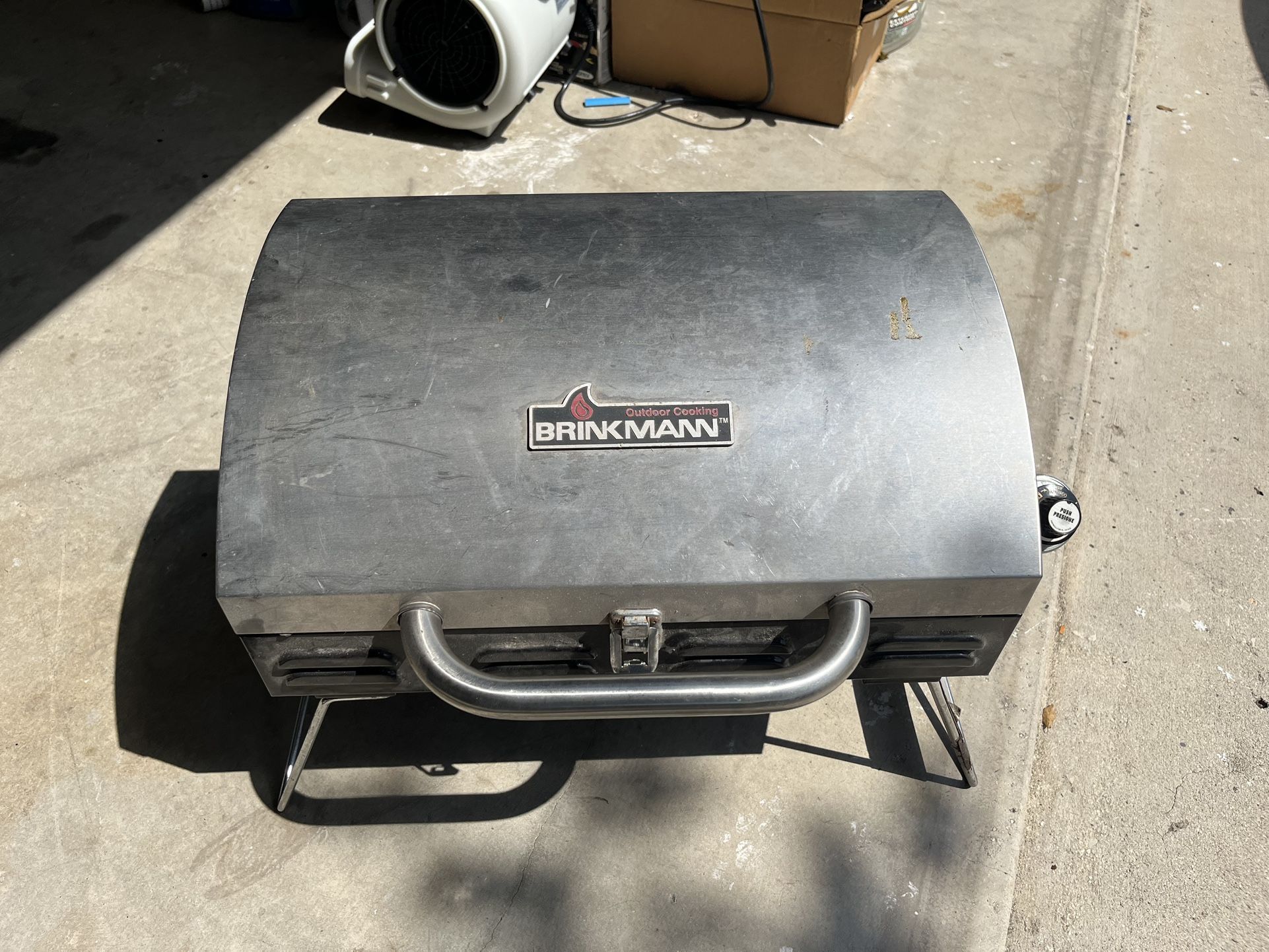 Portable propane bbq pit. Works great, portable, for ‘on the go’ bbqs. Uses propane tank, or with the right adapter, you can hook up a larger tank. $50, OBO