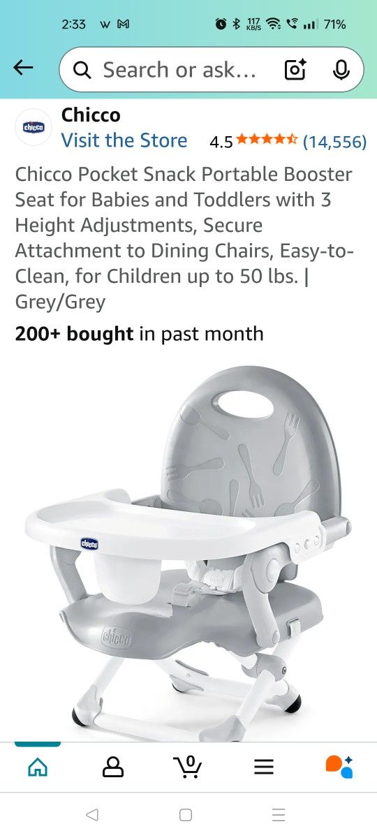 $30 each or $50 for both. Chicco Pocket Snack Portable Booster Seat for Babies and Toddlers with 3 Height Adjustments, Secure Attachment to Dining Chairs, Easy-to-Clean, for Children up to 50 lbs. | Grey/Grey I brought 3 for our kid to use, one we are still using at home and this is the traveling set we kept in the cars. Lightly used