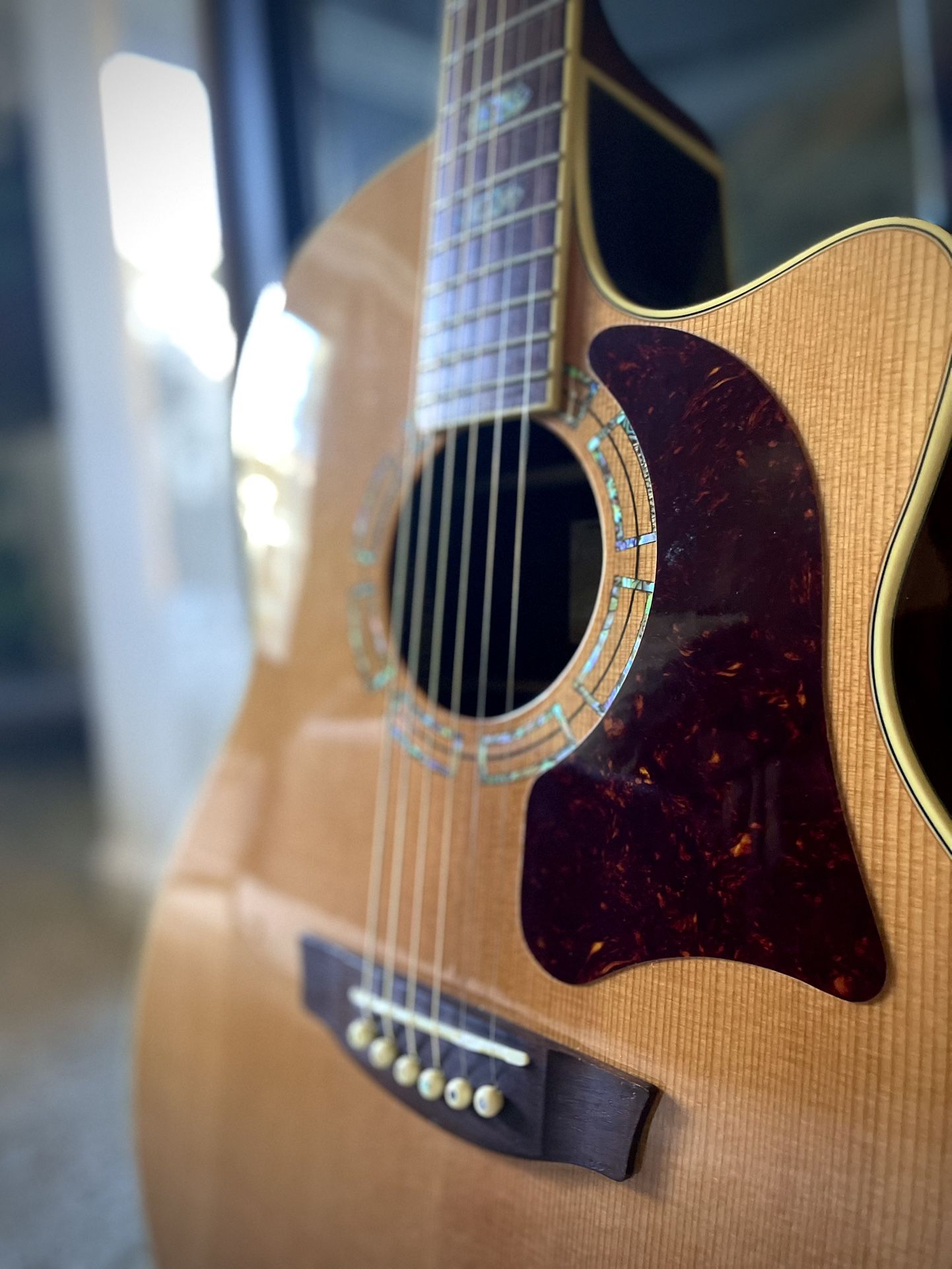 Offered here is my beautifully kept Garrison GC-700-CE from the AG Series — a Canadian-designed grand auditorium acoustic-electric known for its rich projection, structural stability, and stage-ready electronics. This model features a solid Sitka spruce top paired with rosewood back and sides, delivering a warm, balanced tone with clear highs and strong low-end response. The elegant abalone rosette and inlays, gloss natural finish, gold tuners, and tortoise-style pickguard give it a refined, high-end aesthetic. The grand auditorium body offers excellent versatility — equally suited for fingerstyle, strumming, live performance, and beginners alike. I learned on this guitar myself and I truly am sad to see it go. Specifications: Model: GC-700-CE (Cutaway Electric) - Body: Grand Auditorium - Top: Solid Sitka Spruce - Back & Sides: Rosewood - Neck: Mahogany - Fingerboard & Bridge: Rosewood - Scale Length: 25.5” - Electronics: Artec AE7 onboard preamp with 3-band EQ & presence control - Finish: Gloss Natural - Made in Newfoundland, Canada Condition: - Excellent cosmetic condition - Clean top with no cracks - Neck is straight and stable - Electronics fully functional - Minimal fret wear Garrison guitars are known for their innovative internal bracing system, offering strong projection and long-term neck stability. Production ended after the brand was acquired, making these increasingly harder to find in this condition. A fantastic instrument for gigging musicians, beginners, recording artists, or anyone wanting solid-wood tone without boutique pricing. Asking: $299 OBO - Carrying Case IS included! Message me for details. Cash, zelle, or instant venmo deposits only, thanks