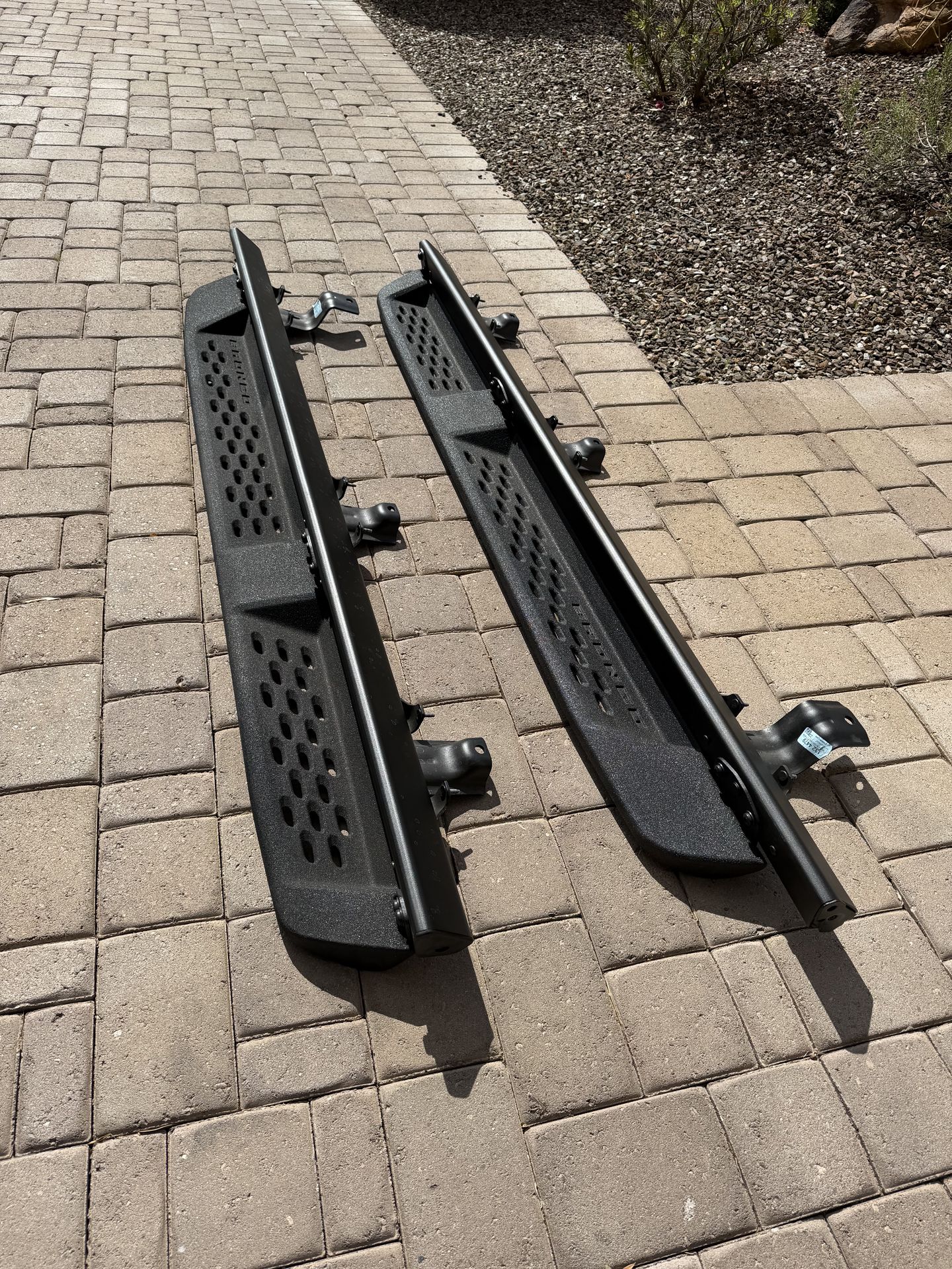 BRAND NEW! Removed when vehicle was purchased! Aggressive Raptor-inspired design Built tough for durability and longevity Easy installation process (all hardware included) Enhances Bronco's rugged appearance Provides convenient access to your vehicle No drilling Needed A pair of side steps (including one left step and one right step) Compatible with 4-door Ford Bronco models Crafted from heavy-duty carbon steel, these running boards are built to withstand the toughest terrains and conditions. Shield your Bronco's side panels from rock chips, mud, and debris with these durable running boards. Easy Installation: Designed for a hassle-free installation process, these running boards can be quickly mounted on your 4-door Bronco. Fitment: Ford Bronco 2021-2026 4 Door Does not fit Ford Bronco Sport and Ford Bronco 2 Door
