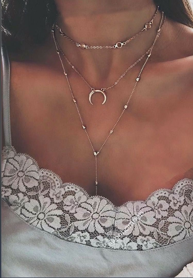 Fashion Boho Choker Vintage Moon Long Chain Multilayer Necklace, Gold Color