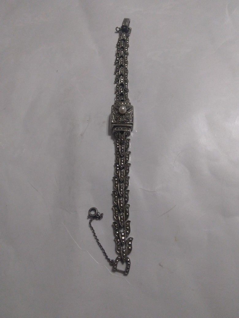Silver Black Onyx And One Pearl In The Center Bracelet Lent Seven Use