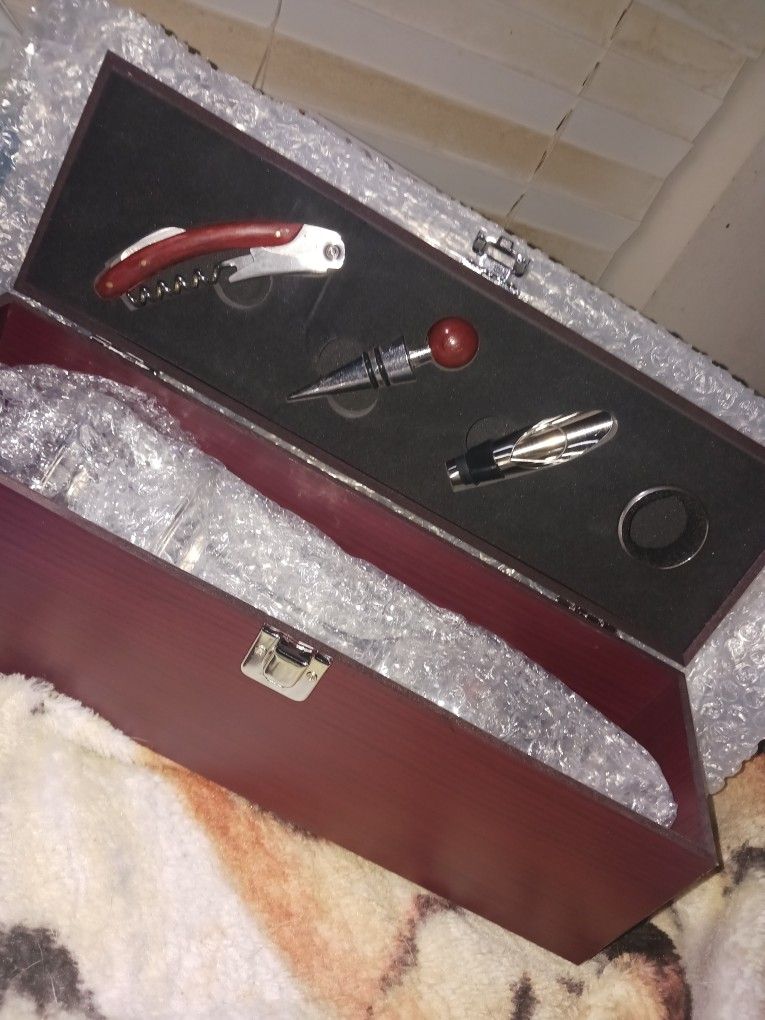 Brand New 7 Pc Wine Set Gorgous Wood Case 2 Wine Glasses Etc By True 20 Firm This 70 Online