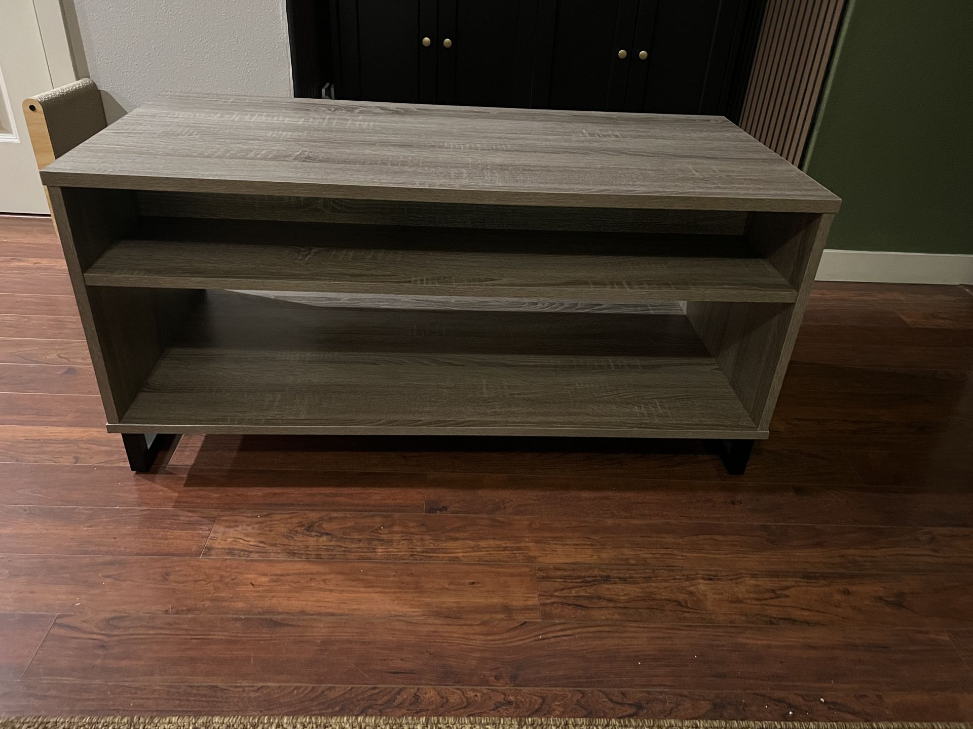Gray toned wood appearance coffee table with minor signs of use. Good shelf space for storage. Great addition for a living room! Dimensions listed in photo, message if interested!