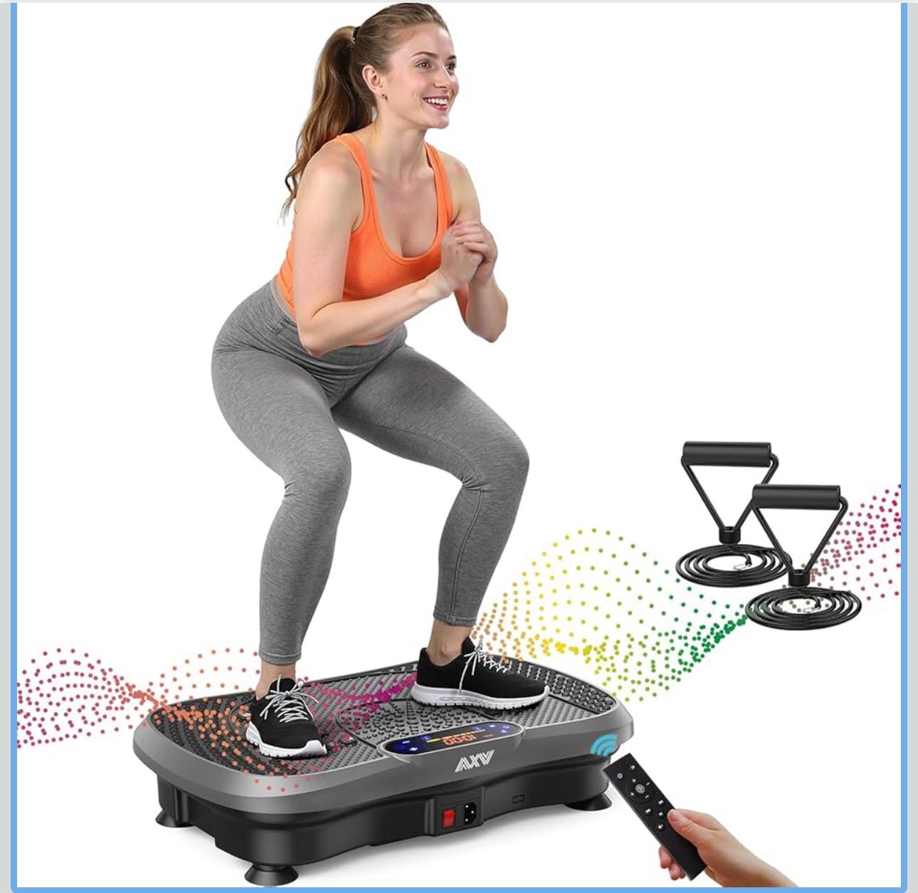 Amazon selling it for $129.99 Brand New in its box Selling price is firm as the price is at rock bottom at almost half of what Amazon is selling it for. Brand AXV Item Weight 9.07 Kilograms Color Gray Material Plastic Product Dimensions 12.6"D x 21"W x 4.7"H Maximum Weight Recommendation 330 Pounds ✅BUILD YOUR DREAM BODY: Jump on your vibrating exercise machine to instantly sculpt your ideal body!The system creates a full-body vibration that stimulates muscles - causing extra muscle contraction and increased activation.This kind of machine helps in maintaining reflex reactions, thus burning calories and https://offerup.com/redirect/?o=ZmF0Lkl0 can helps your body process fat many times faster than running. ✅RELIEF, REHABILITATION & REPAIR: The AXV vibration plate delivers efficient and gentle Whole Body Vibrations, waking muscles throughout the body and increasing blood flow in the muscles. This enhances your body’s built-in ability to regenerate cells and repair itself. Continued and regular use builds up muscle tone, protecting nerves and bones, and providing greater range of motion. ✅RICH FUNCTIONAL & HIGH EFFICIENT& REMOTE CONTROL: Adjustable vibration speed (1 to 120), with 2 resistance workout bands, can exercise upper body and lower body at the same time. Offering variety of exercise modes, allow you to try different vibration exercises, With this workout machine, you can have your routine exercise done in only 10 minutes everyday. What you’ll get is a better shape and enhanced metabolism, increased bone mineral density, relieve and reduce stress levels. ✅WHY WE CHOOSE AXV VIBRATION PLATE: Can be connected to phone via BT and used as BT speaker; Magnet health massage function; LED display shows time, speed and burnt fat making your workout visible; Compact size can be used anywhere & easy to carry and store; Anti-slip coating designed;Enhanced upgraded Ergonomic design shell ensures more durability and stability; Comes with Remote control ,Resistance Bands and detailed manual...everything you need. ✅SUPERIOR QUALITY 100% SATISFACTION GUARANTEE: Our products are manufactured by the top professional factory, each product has been rigorously tested. you can enjoy our vibration plate and resistance bands absolutely risk-free. AXV's mission is to develop premium & safe home exercise equipment to help you lead a healthier & better lifestyle with 100% customer satisfaction. If you got any problems, just contact the seller first in Email,we will give you a satisfactory solution. £1