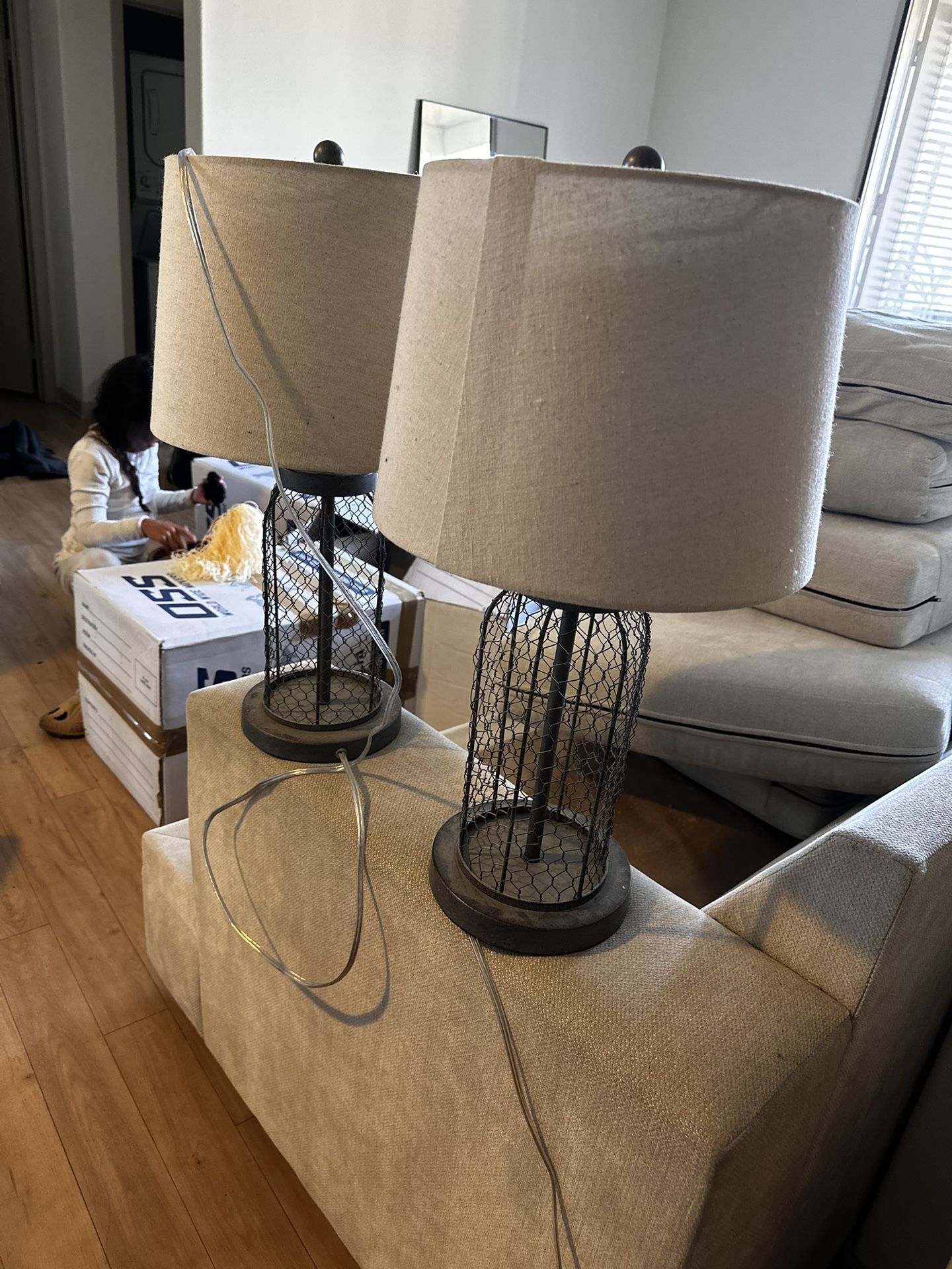 Used em for our end tables next to our couch.. great working condition. Beige and black.
