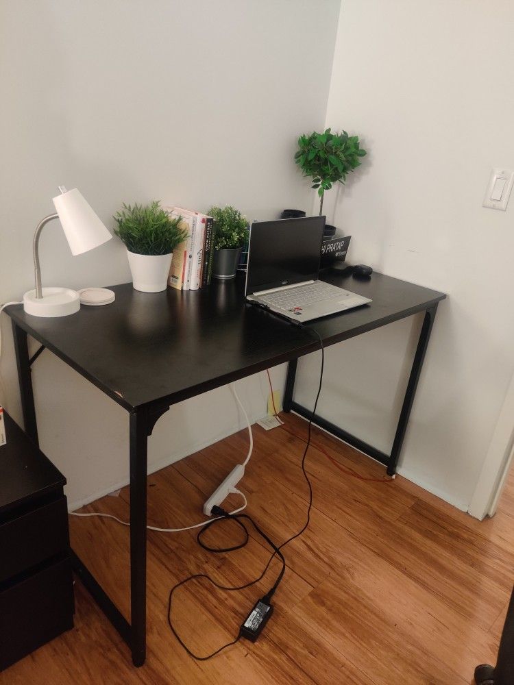 Study Table - https://offerup.com/redirect/?o=aHR0cHM6Ly9hLmNvL2QvNWo4bU9UNg== 47" spacious table - can easily fit monitor, laptop and books, bought from Amazon for $79 Study Chair - https://offerup.com/redirect/?o=aHR0cHM6Ly9hLmNvL2QvYzJoY240WA== Ergonomic Desk chair, bought from Amazon for $48