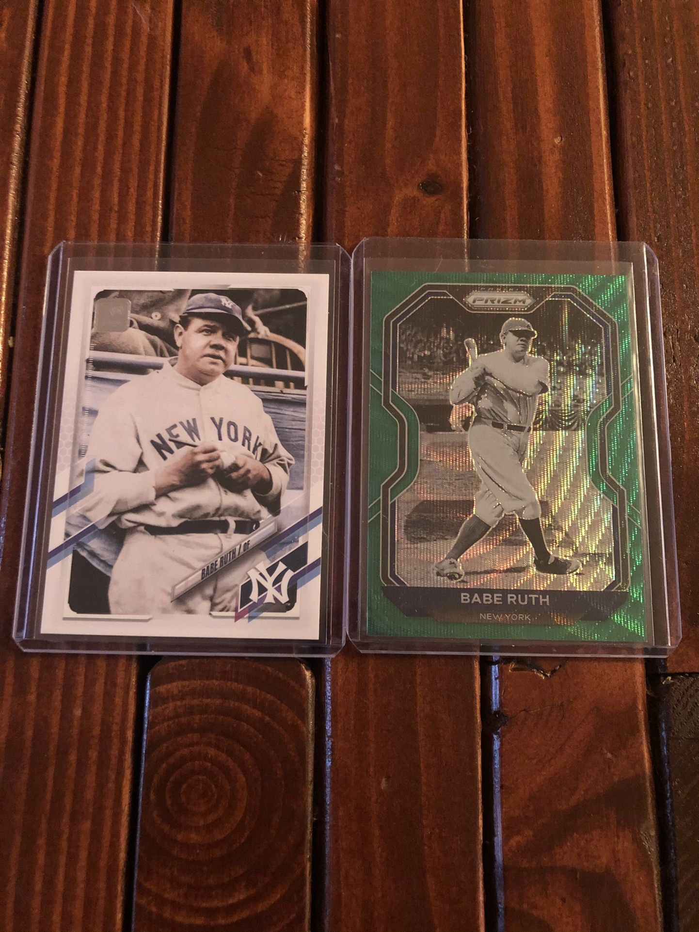A couple of babe Ruth new York yankees 2021 trading cards. The topps one is a short print I believe.