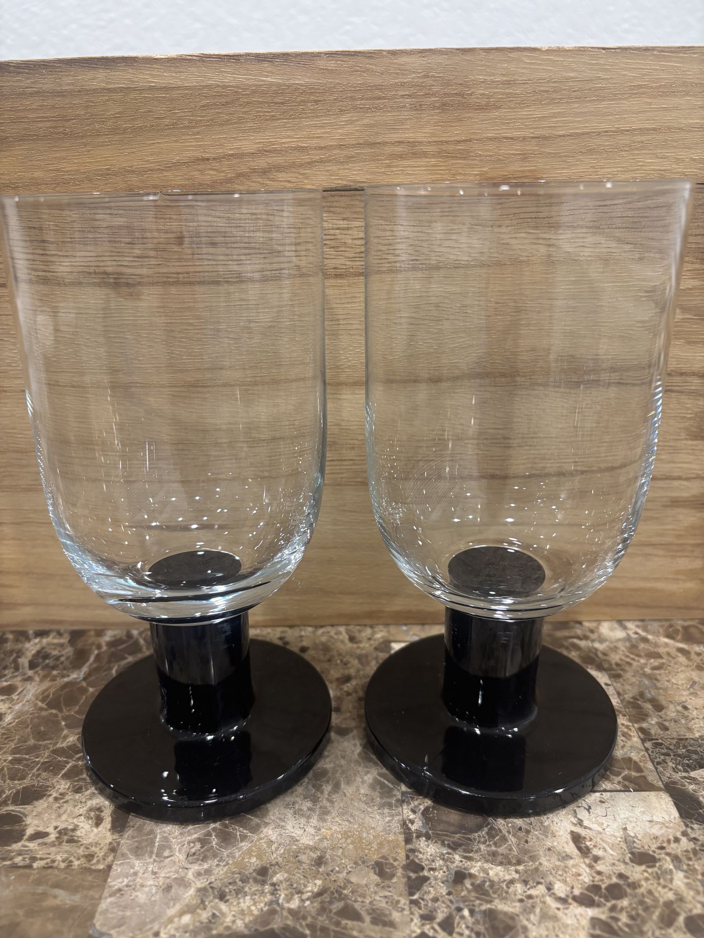 CRATE & BARREL Viva Black Vintage Steam Water Wine Glasses Goblets Set of 2