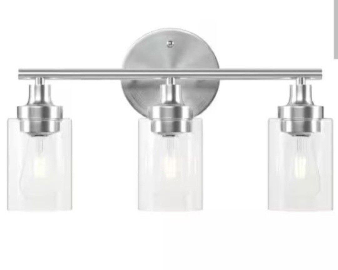 17 in. 3-Light Modern Brushed Nickel Vanity-Light with Clear Glass Shade