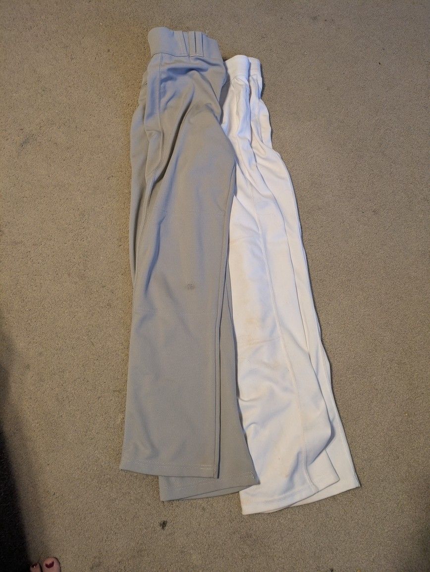 Baseball pants. Used for one season. Grey: youth extra large White: Adult medium Different sizes but similar fit.