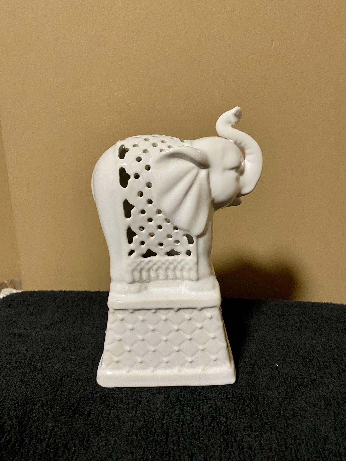 Ceramic Elephant. Beautiful detail. Like new. Was initially used for scents, which may now be discontinued unless available for online purchase. 8” h c 4.5” w base at bottom. See other items also listed.