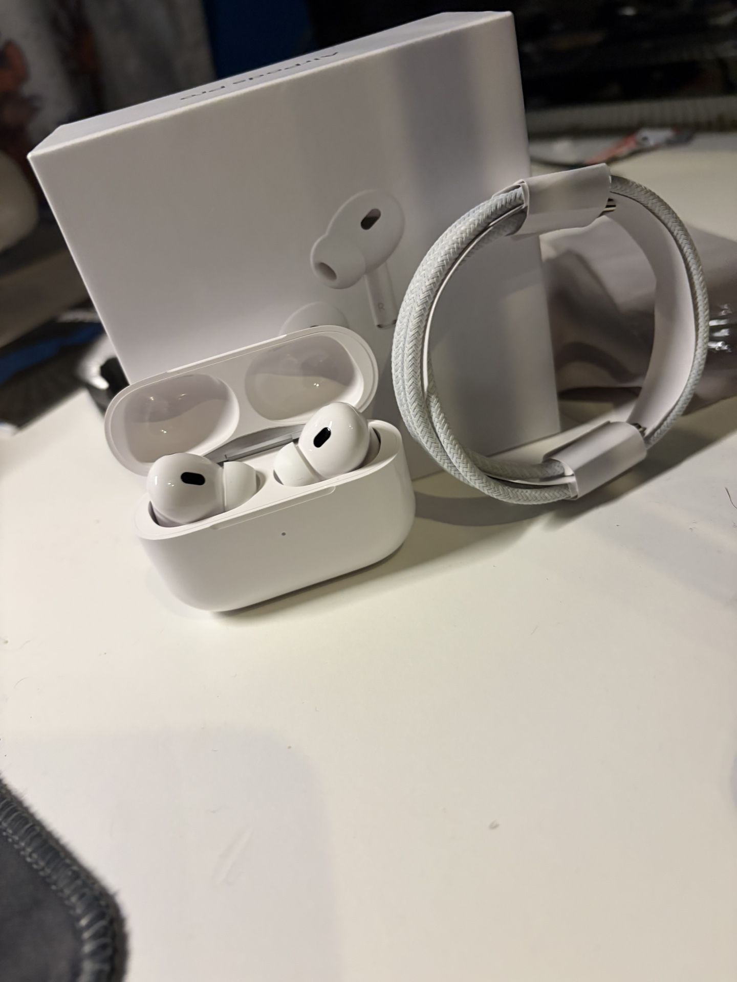 Selling my Apple AirPods Pro 2nd Generation. They arrived today and were only used for about 5 minutes to test. They are 100% real Apple, and the serial number matches the box + Apple’s system. Condition: • Like new • Original box included • Original USB-C charger included • Charging case + both earbuds in perfect shape • Fully cleaned + factory reset • Transparency + ANC work perfectly Reason for selling: Got them as a gift and already have a pair, so I don’t need these.