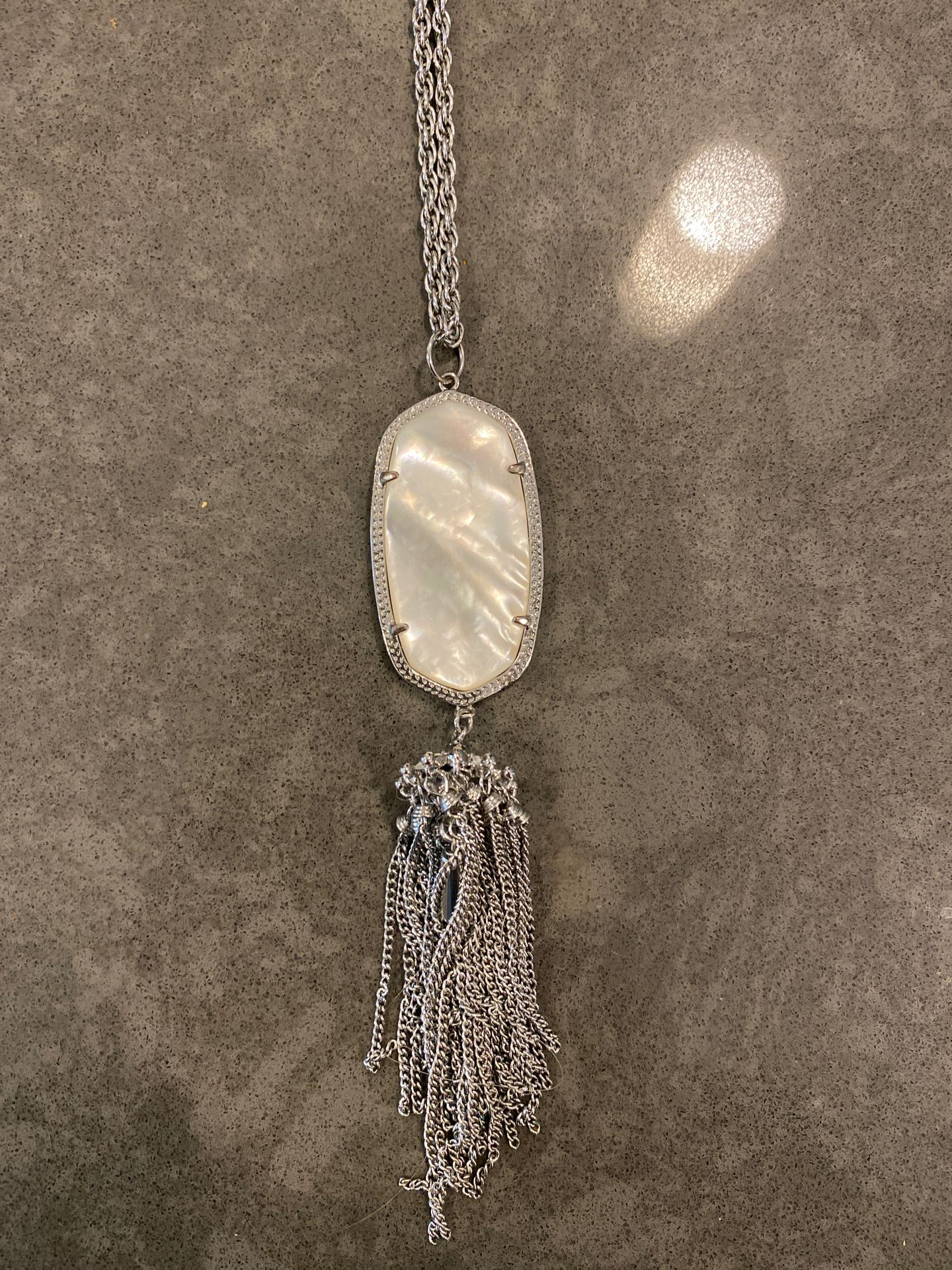 Kendra Scott long statement necklace with mother of pearl center stone