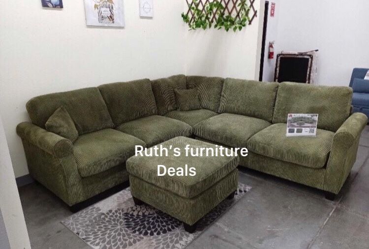 4-Pc Sage Corduroy Sectional Sofa With Ottoman