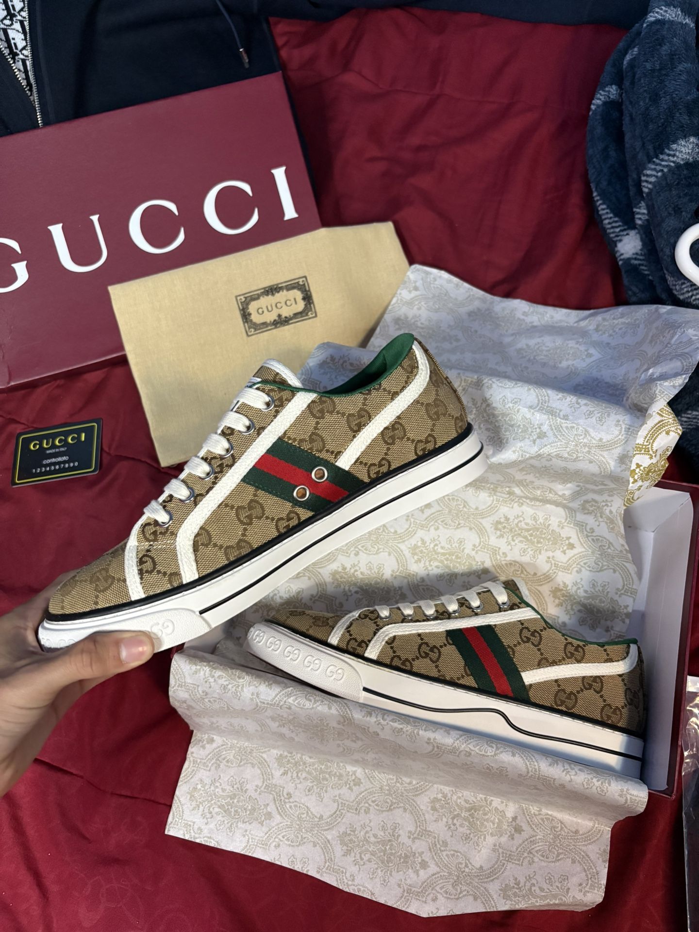 Gucci tennis 1977 sneakers size 42/ us 9 men available. brand new, never worn, and still look. The iconic GG canvas, vintage-inspired sole, and luxury details make them stand out with any fit. If you have any question feel free to message me.