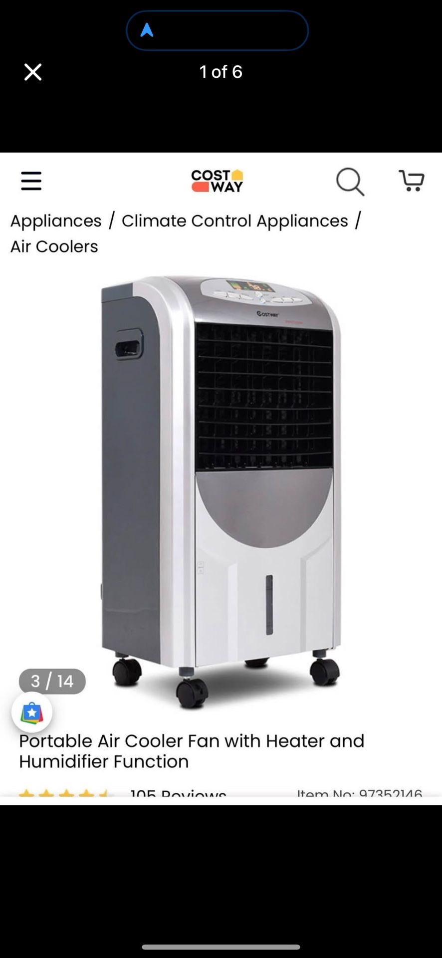 Costway Portable Evaporative Cooler Fan and Heater Humidifier Open box never used Been sitting in storage for couple weeks Back door doesn’t close all the way