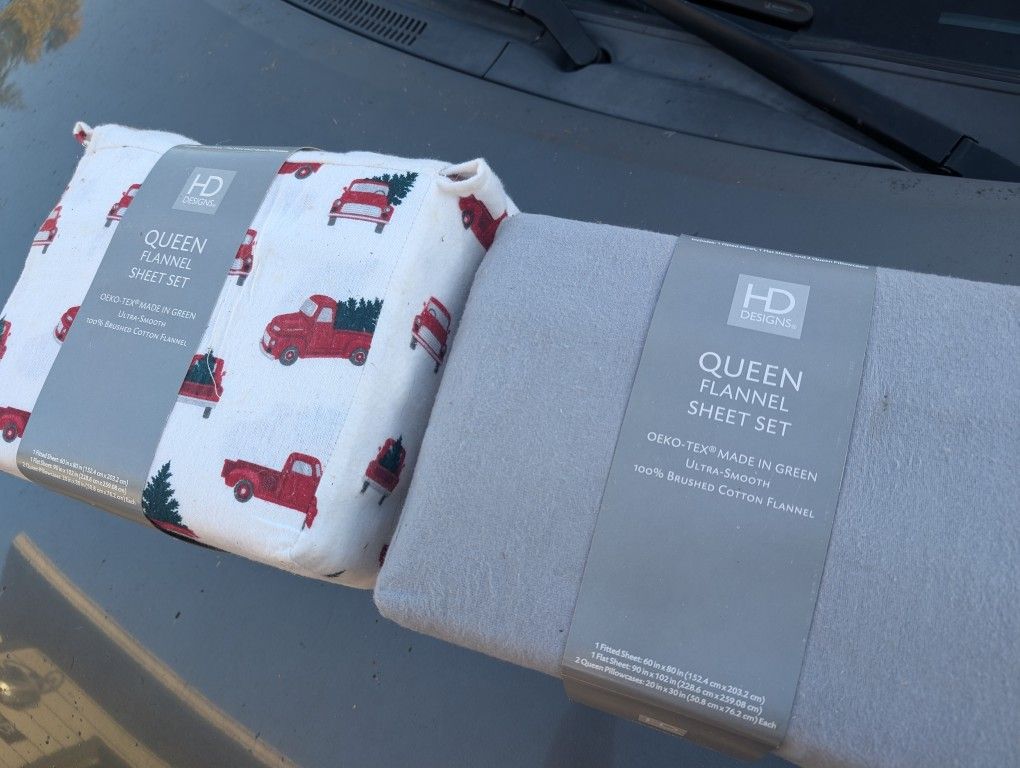 Each one has 1x fitted sheet, 1 flat sheet, 2x queen pillowcases. $30 ea.