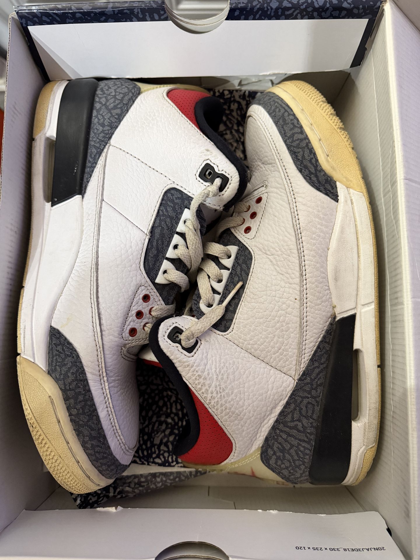Jordan 3 Fire Red Denim men’s size 10. Used fair condition. Check out my other shoes.
