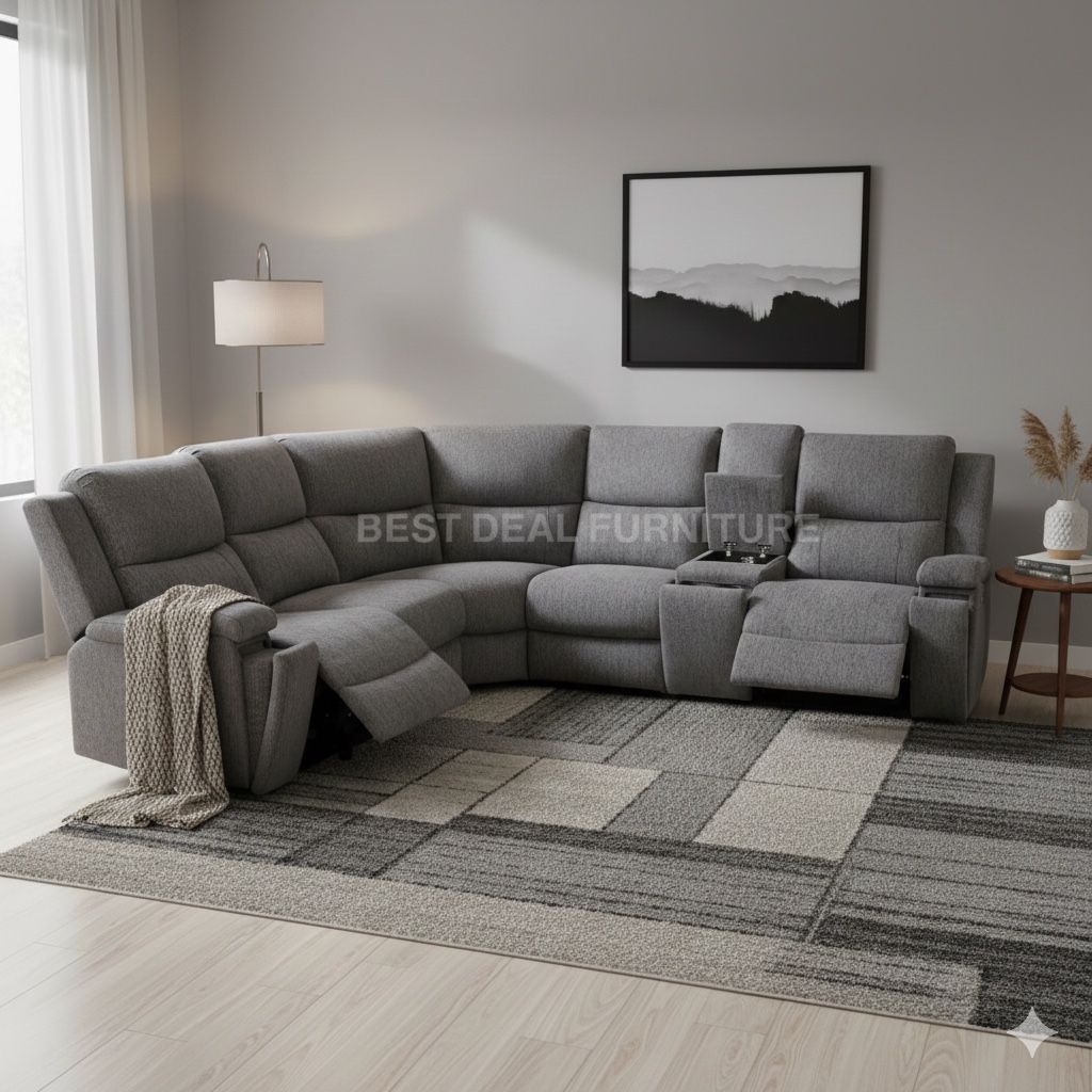 New Gray Power Reclining Sectional Couch