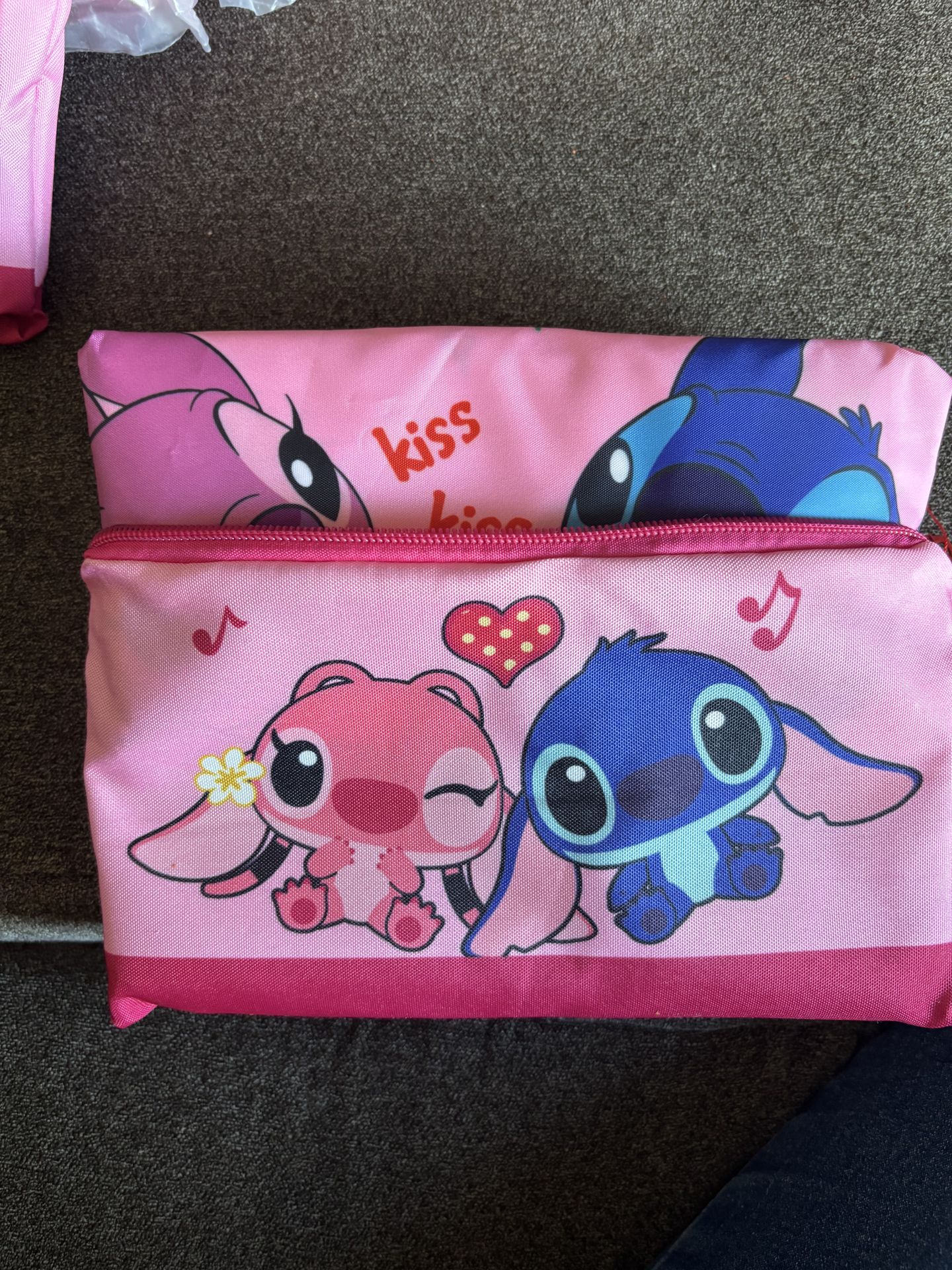 Stitch duffle bag in a makeup bag/ Hablo Español