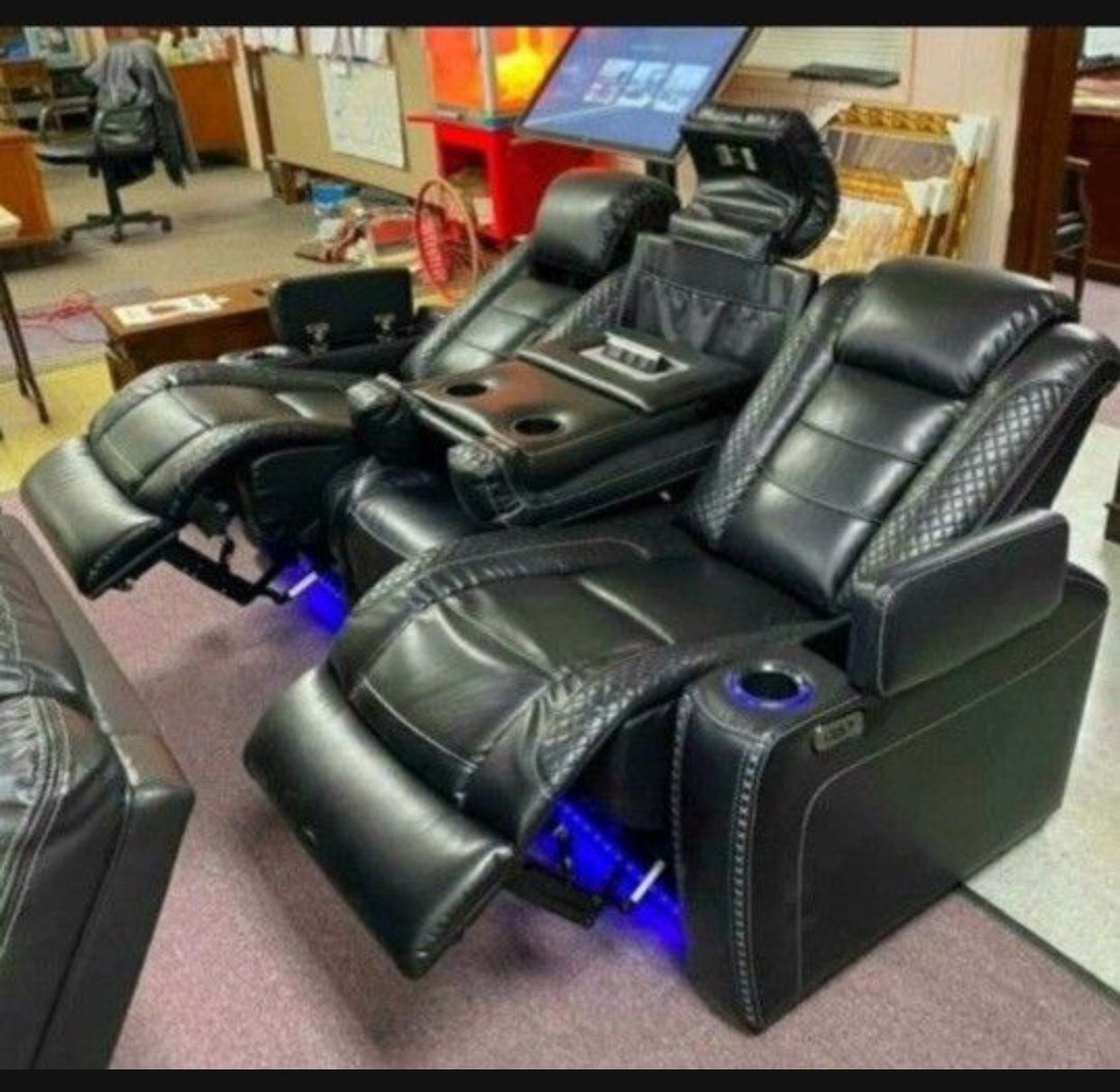 Brand New 💯 Party Time Power Reclining Sofa By Ashley Black 🌟 $39 Down Payment 💲