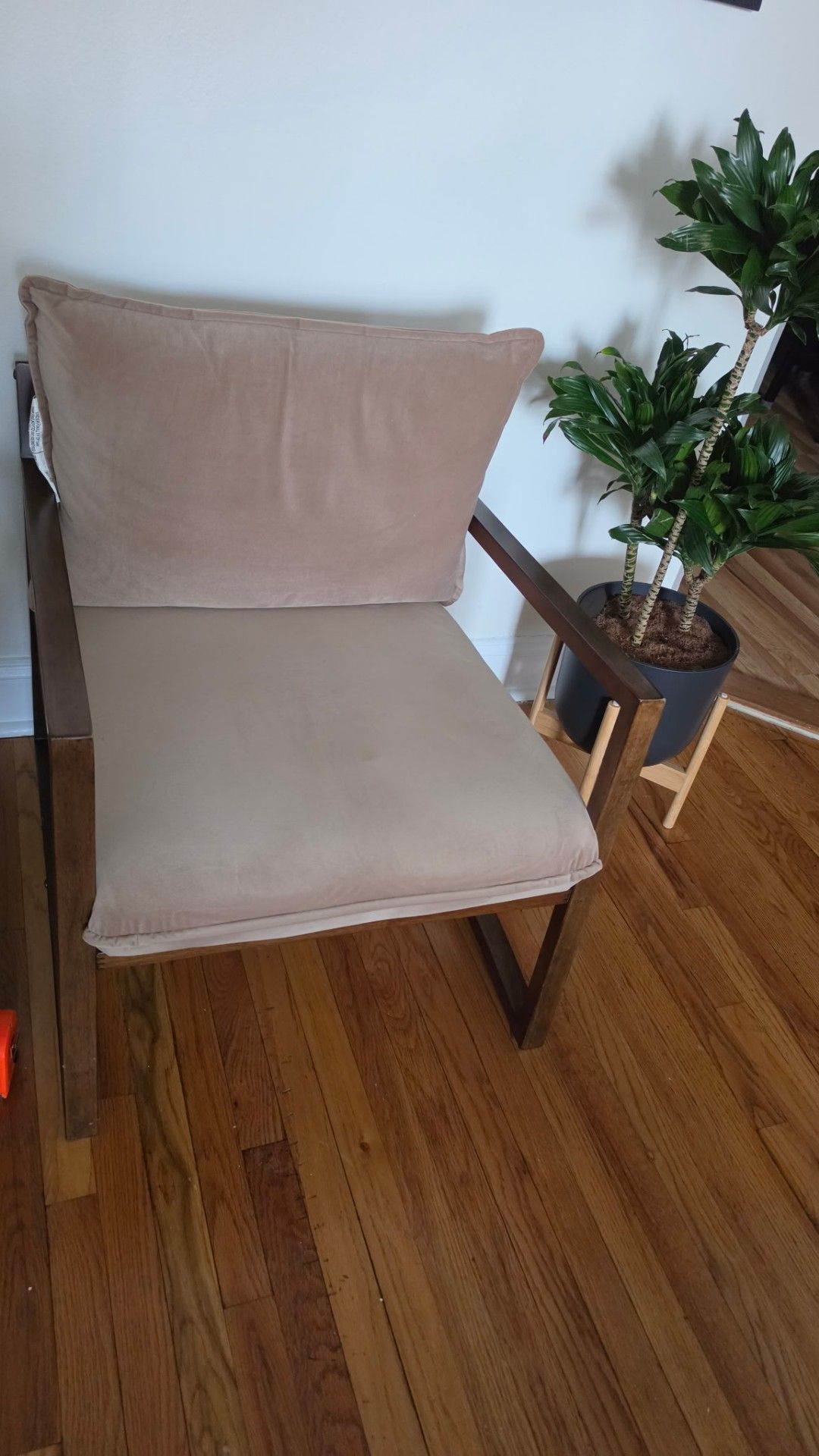 Hi im Selling a set of two accent chairs. They're upholstered in a soft, neutral fabric with dark wood frames. Perfect for adding extra seating to a living room or bedroom great set also save money located in Brooklyn NY pick up only 120 for both chairs