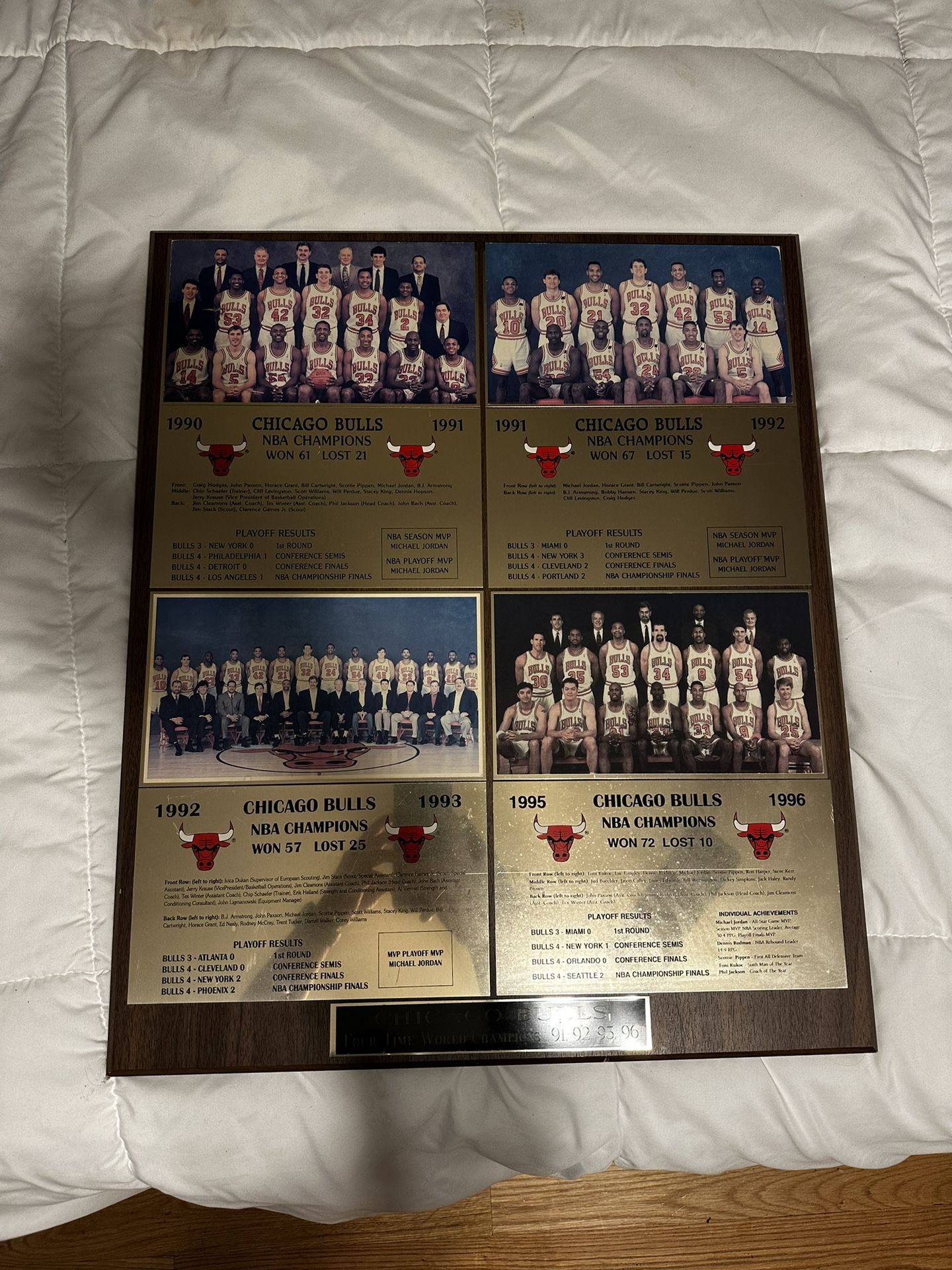 Chicago Bulls 1996 4 Time World Champion Plaque (1991,1992,1993,1996)