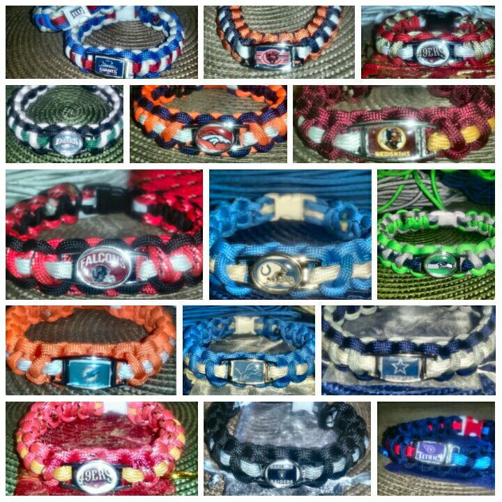 Custom #Handcrafted #NFL TEAM #PARACORD #BRACELETS with #Custom Handmade " NFL #TEAM LOGO " #Charm and Clip Decal Each bracelet is uniquely #handmade to fit each person's wrist size. To measure your wrist - wrap a string around your wrist where you normally wear a bracelet, then measure the string with a ruler. Paracord does not stretch so please round up when picking the size you want. (for example - if your wrist measured 6.5" you may want to get a 7.0" bracelet, so it's not too tight) Check out more bracelets on #Facebook page #Lionlines #giants #Bears #49ers #Eagles #broncos #redskins #falcons #colts #Seahawks #dolphins #lions #cowboys #Raiders #saints #Titans #Patriots #steelers #panthers #bills #vikings Onelove, bless! !
