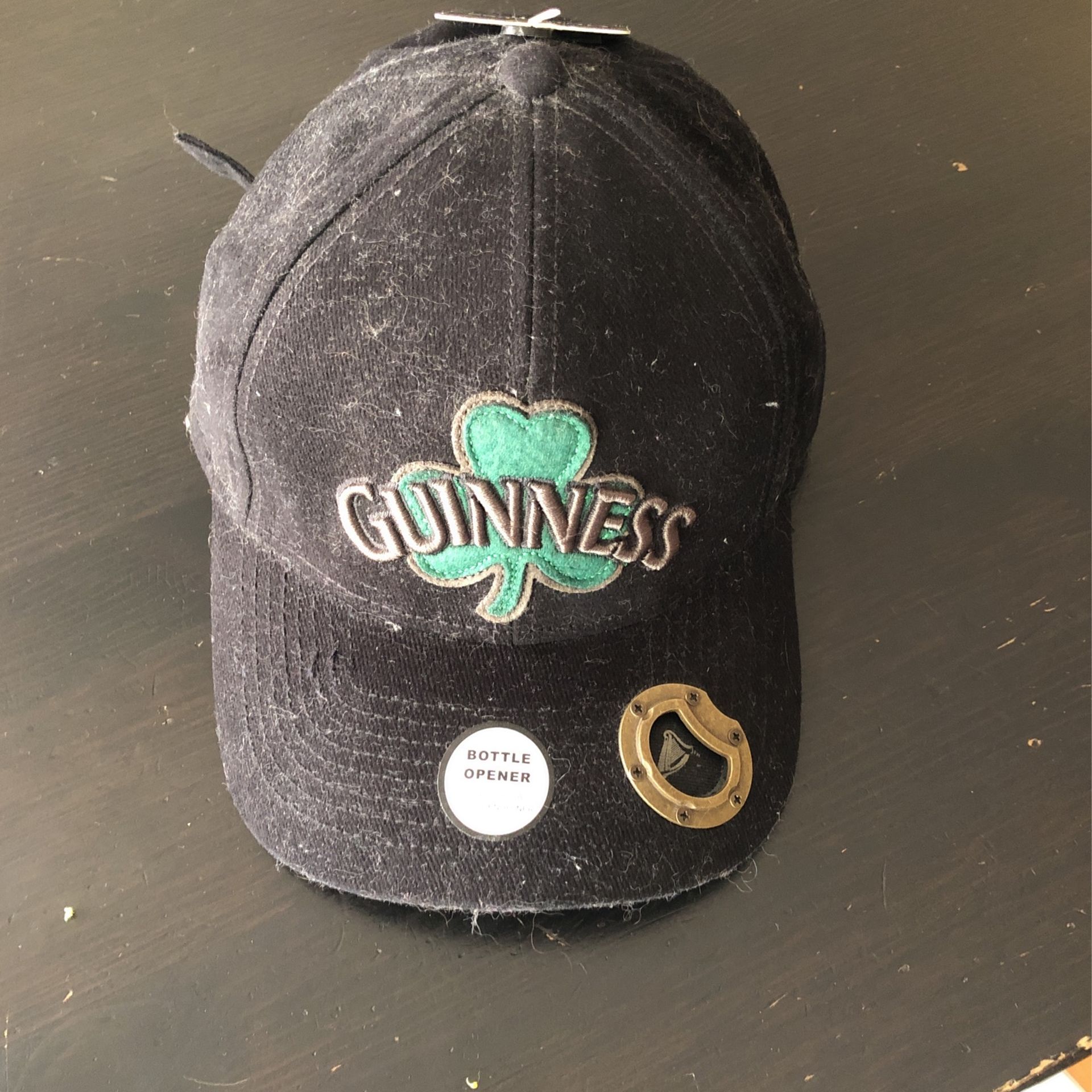 New with tags on! Official Guinness brand baseball cap hat, black with green shamrock and bottle opener on the bill A bit dusty from storage