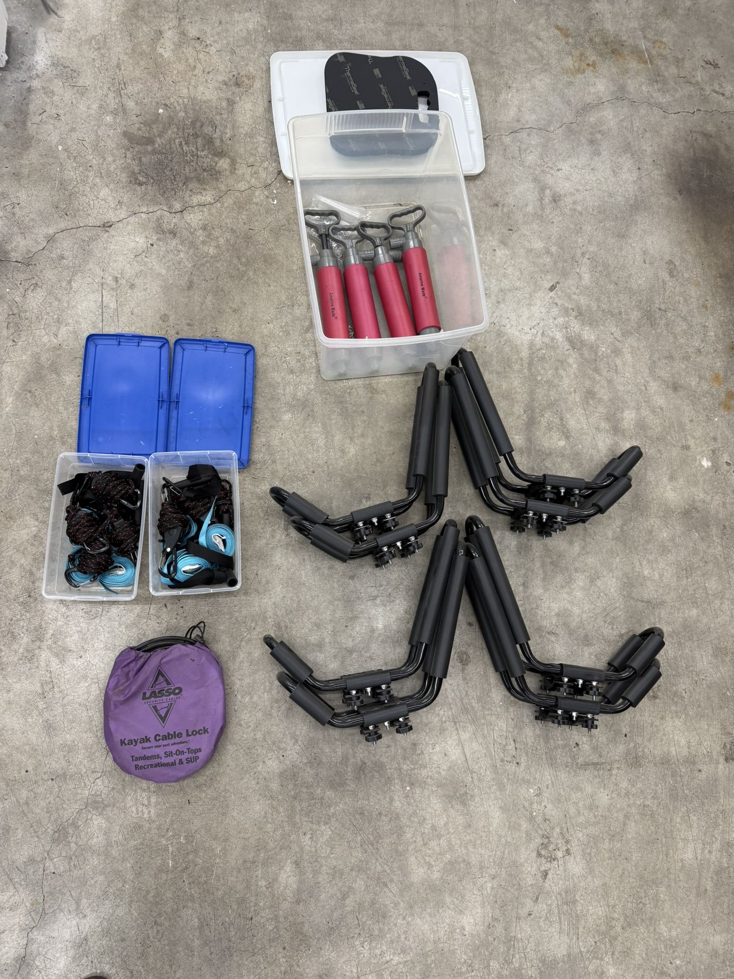- [ ] Roof rack mounts - $20 a pair - [ ] Bilge pumps - $10 each - [ ] Tie down stuff - $20 a box - [ ] Lock - $10 $150 if buying all