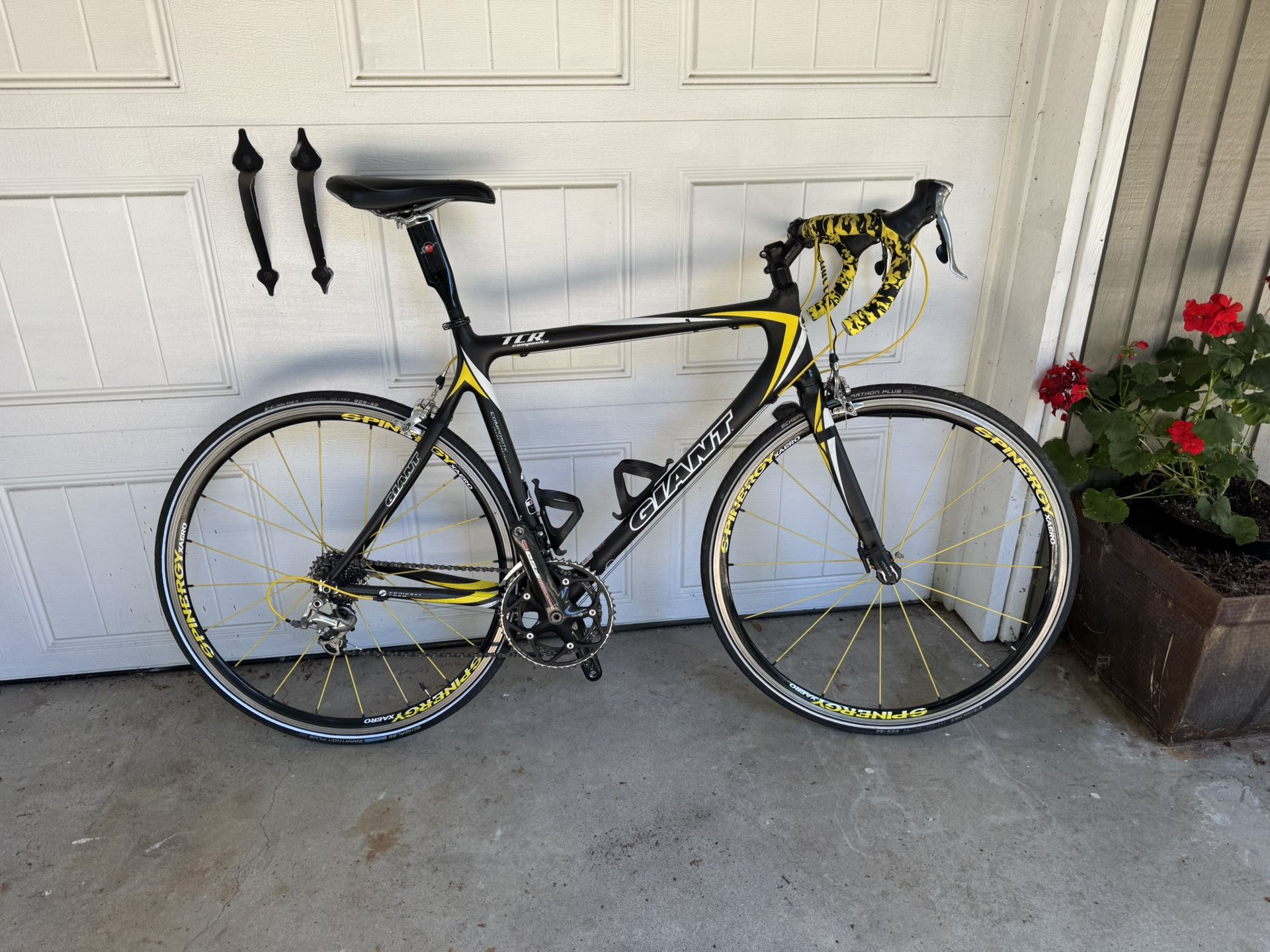 Selling my 2008 Giant TCR road bike. Bike is in great shape with only one minor rub on the graphics, shown in pics. Details: Frame size Large - 58cm, fits riders from 5-8” to 6’-2” Carbon components, frame, seat post, FSA crank, bottle cages. Custom Spinergy rims Shimano ultegra 2x9 drive train Durace brakes with eagle claw pads 700c x 23 tires Lots of Life left in this bike, used all over the northwest will handle mixed terrain reasonably well but is primarily a road bike. Bike has been well cared for and is ready to ride.