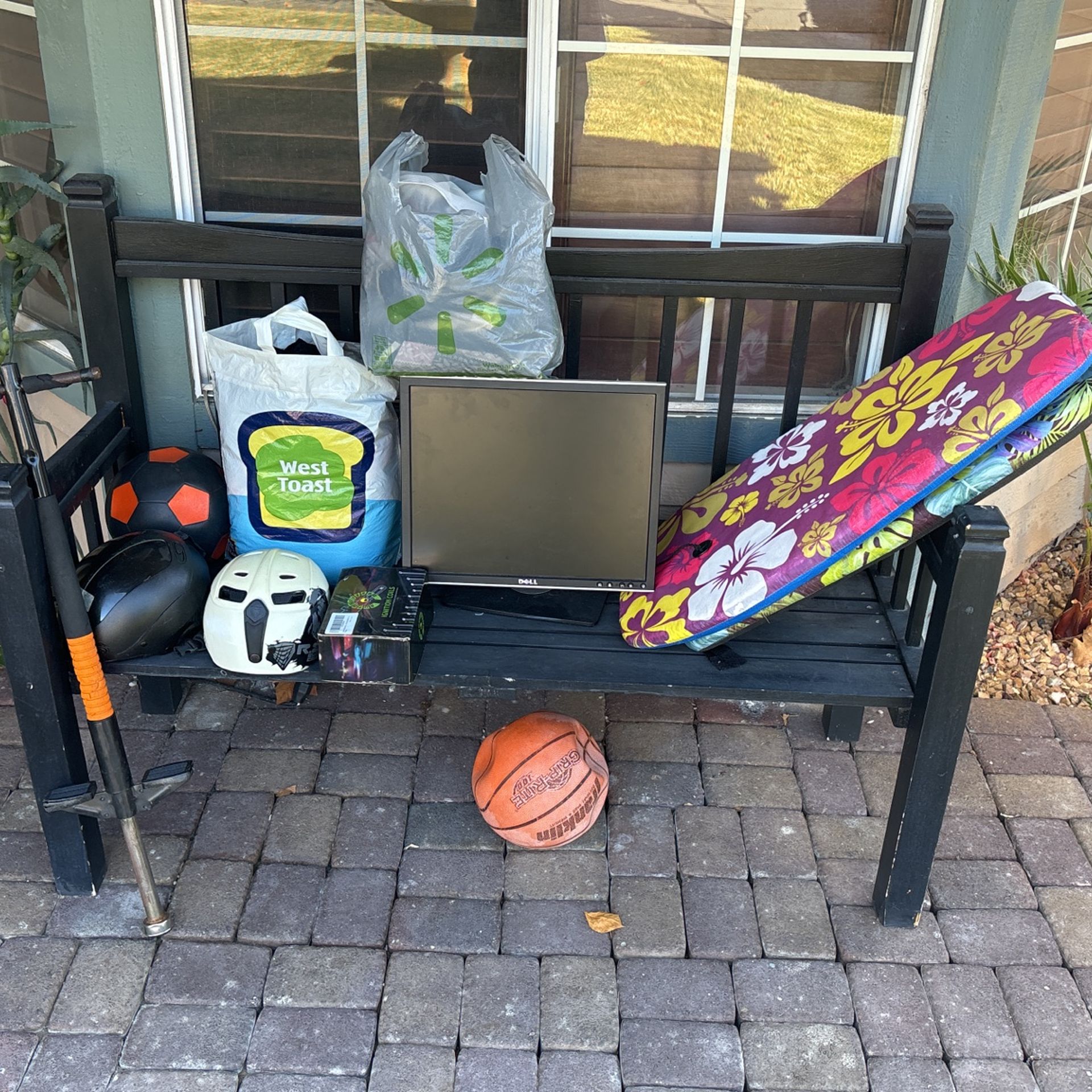 Kids helmets, dell monitor, snowboard ski shoes, ladies clothes and etc DOES NOT INCLUDE THE BENCH!
