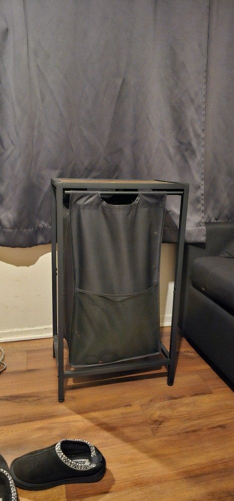 Used a few months Great condition Holds enough clothes for a wk for 1 person Wood shelf top