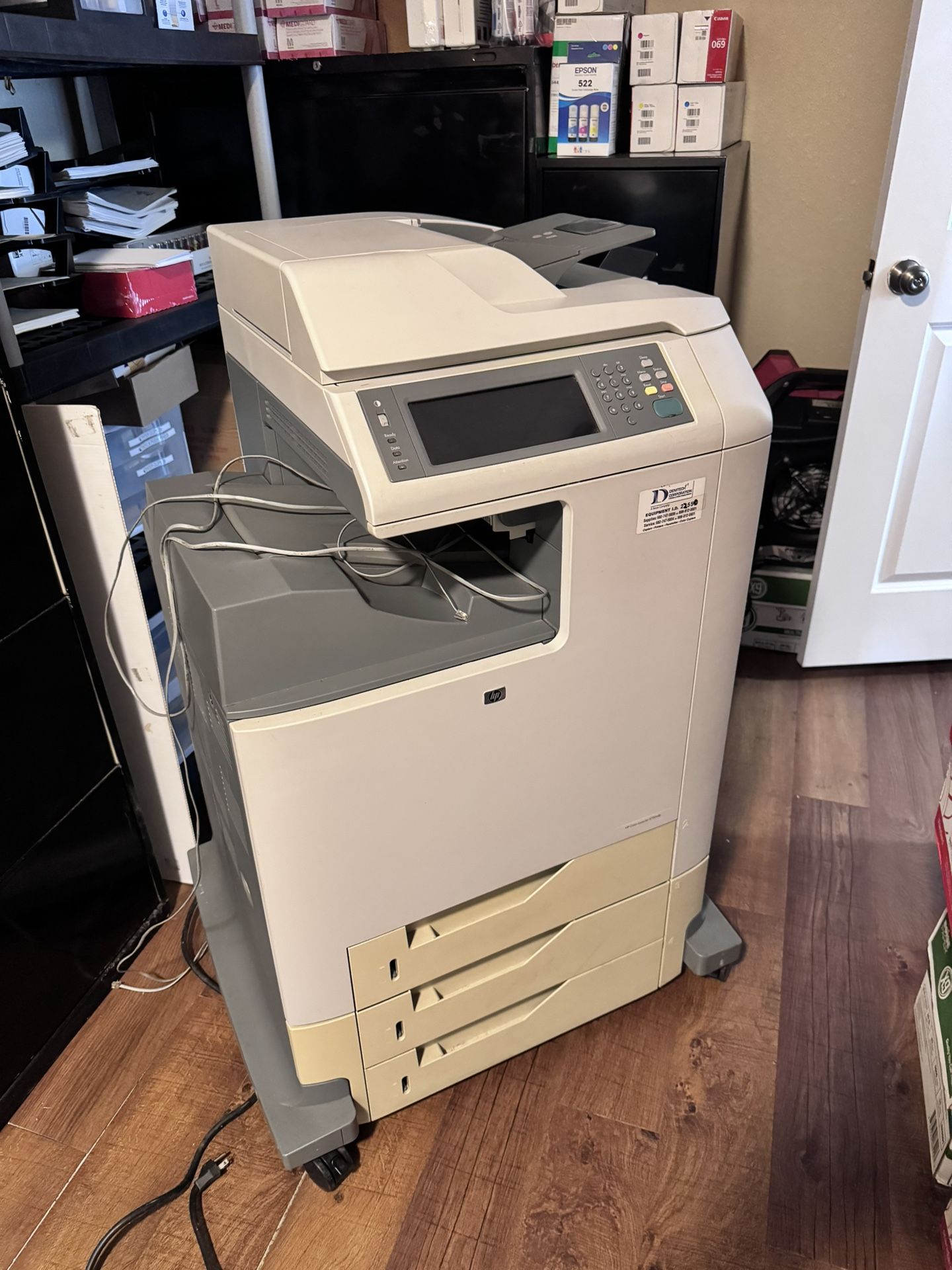 Hp color laser jet 4730 Everything works, I run about 1,000 copies a day Just put new cartridges in Will plug up and show you everything